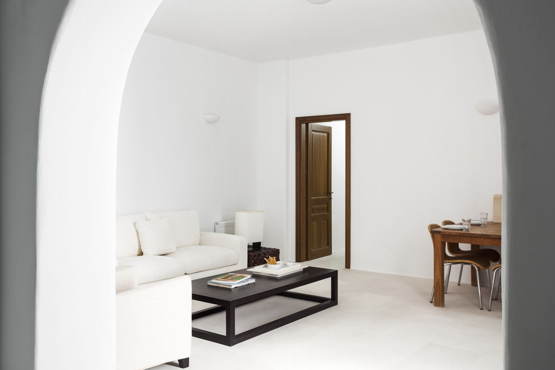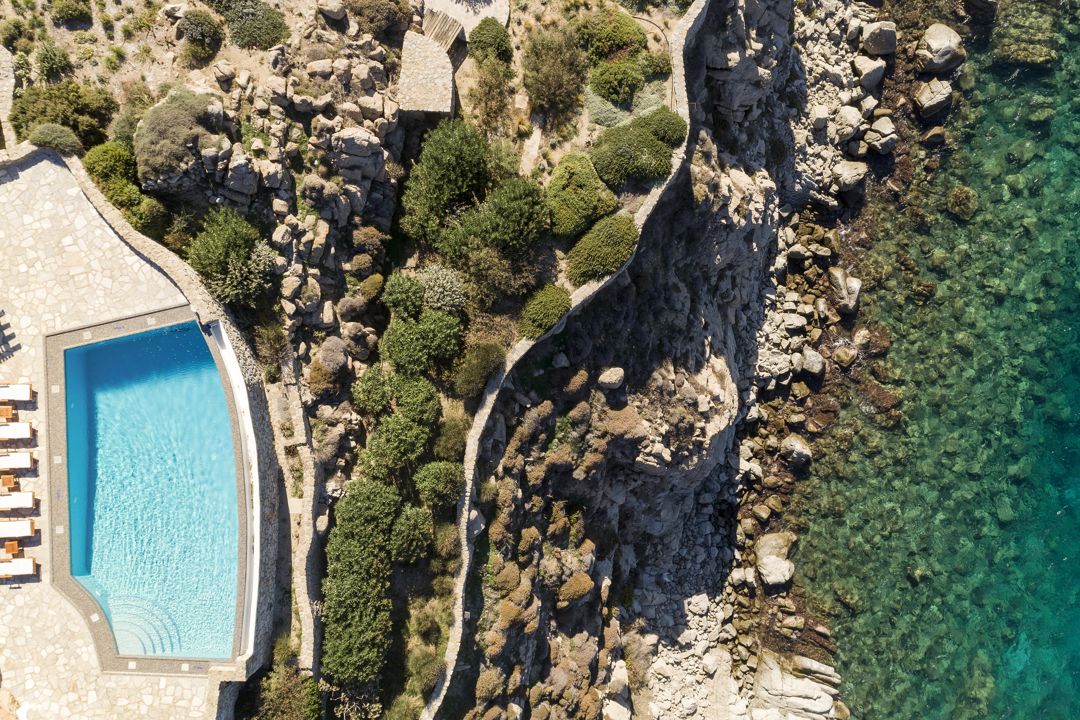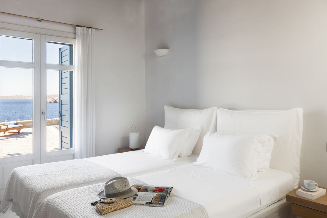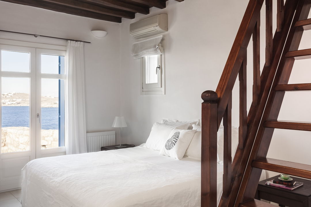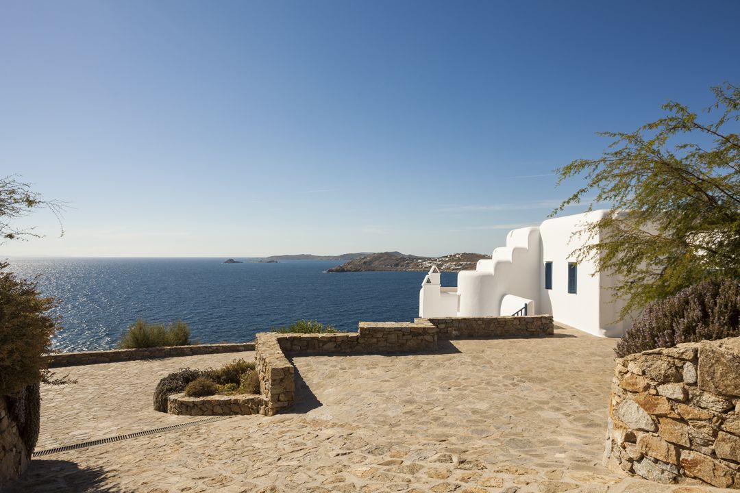 The brilliant white interiors and exteriors and the subtle tasteful ethnic decorations reflect and contrast the Mykonian-elegance the island is known for, so you can totally immerse yourself in the spirit of the island. The villa is perched at the edge of the private estate of 10 villas and enjoys an uninterrupted view of Delos and Rhenea islands over a majestic drop to the sea, offering the picture-perfect Mykonos sunset.