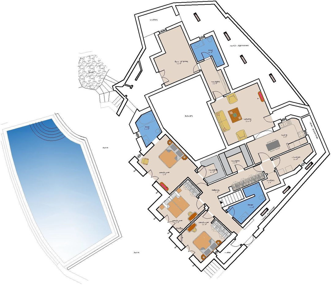 - 4th bedroom with king bed (2 twin beds), A/C, flat-screen TV with Netflix, closet, hairdryer, direct access to the pool, sea view
