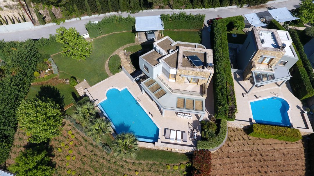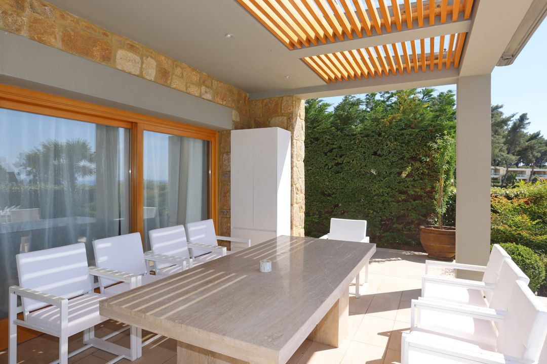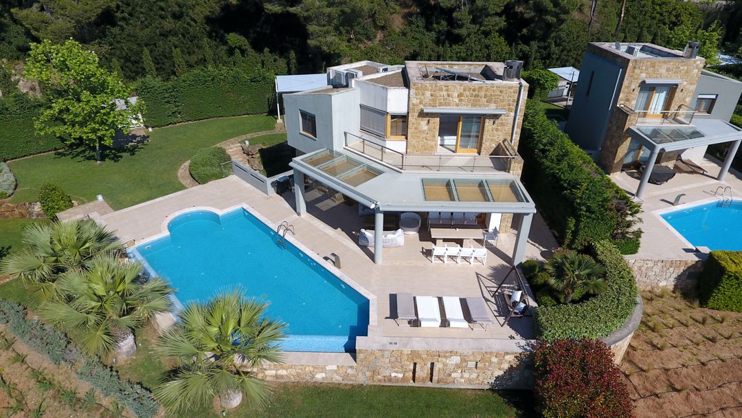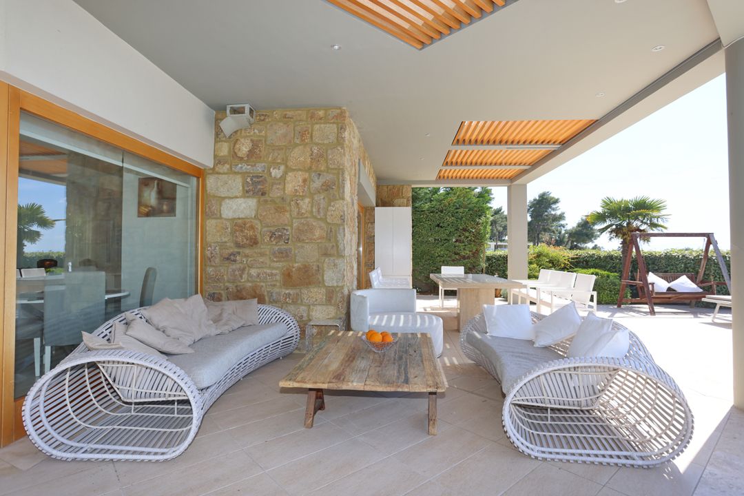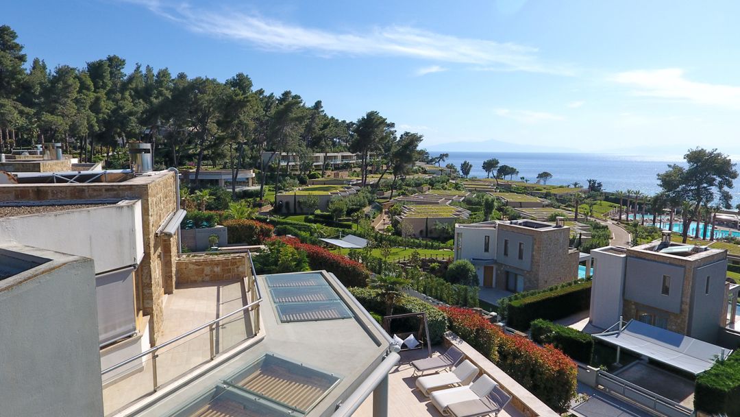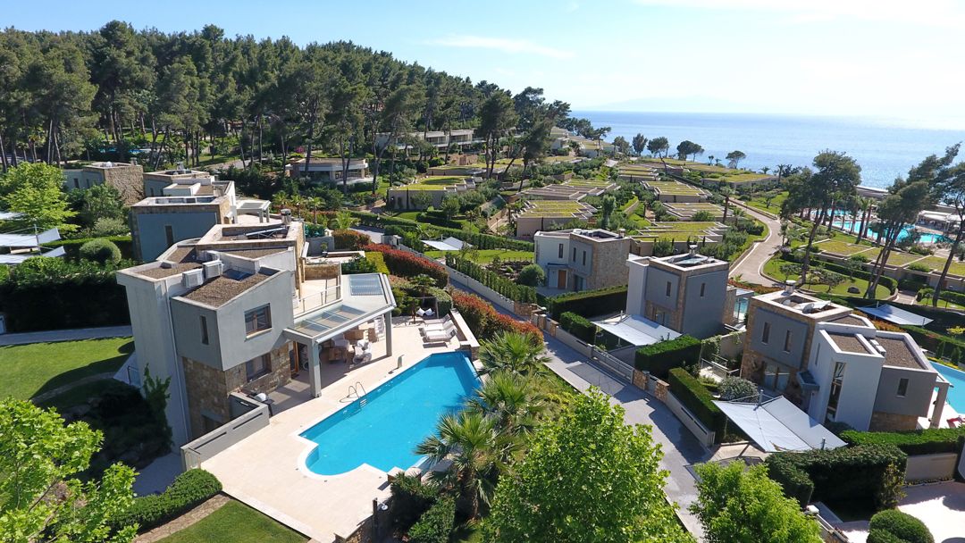 An elegant, luxurious Villa Nova with 5 bedrooms, a private pool, and magnificent panoramic sea views in the exclusive resort of Sani on the peninsula of Kassandra, Halkidiki for rent.