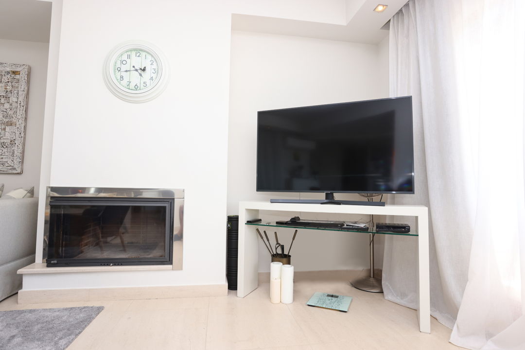 - Spacious living room with fireplace, sofa bed and TV