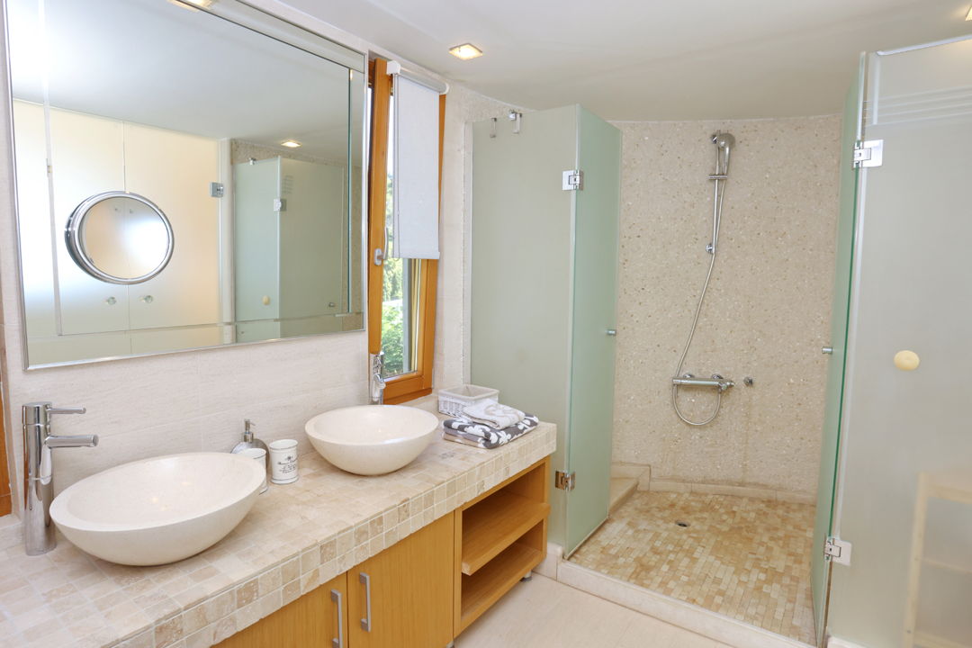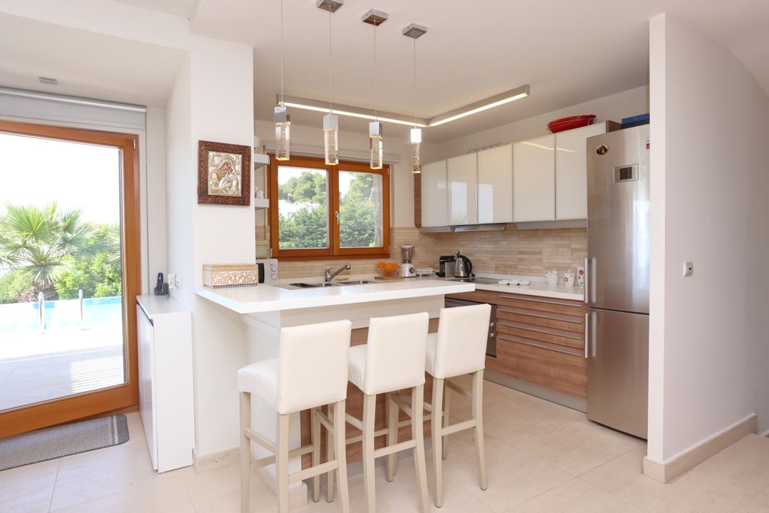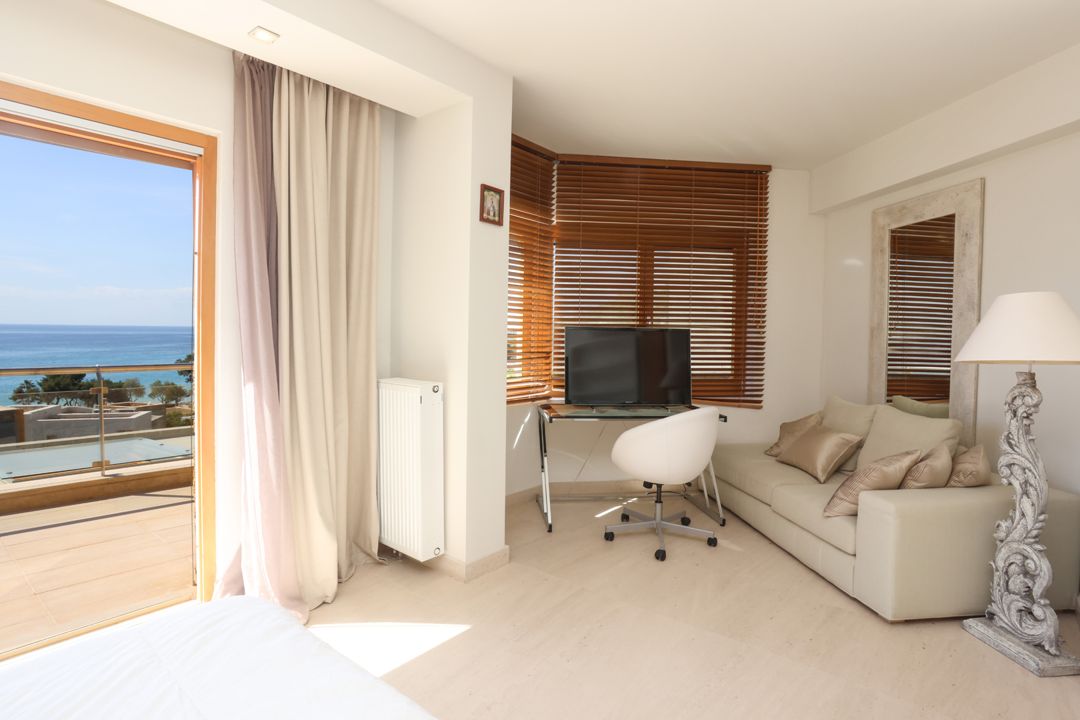 The house is located in a complex of private villas on the territory of the Sani Club Hotel but does not belong to the hotel. The nearest sandy organized beach is only 250 meters from the residence. Thanks to the unique location, the guests of the villa can use the services of the Sani Resort complex, and, at the same time, live in a spacious private villa.