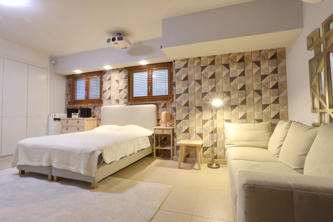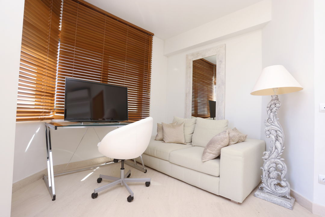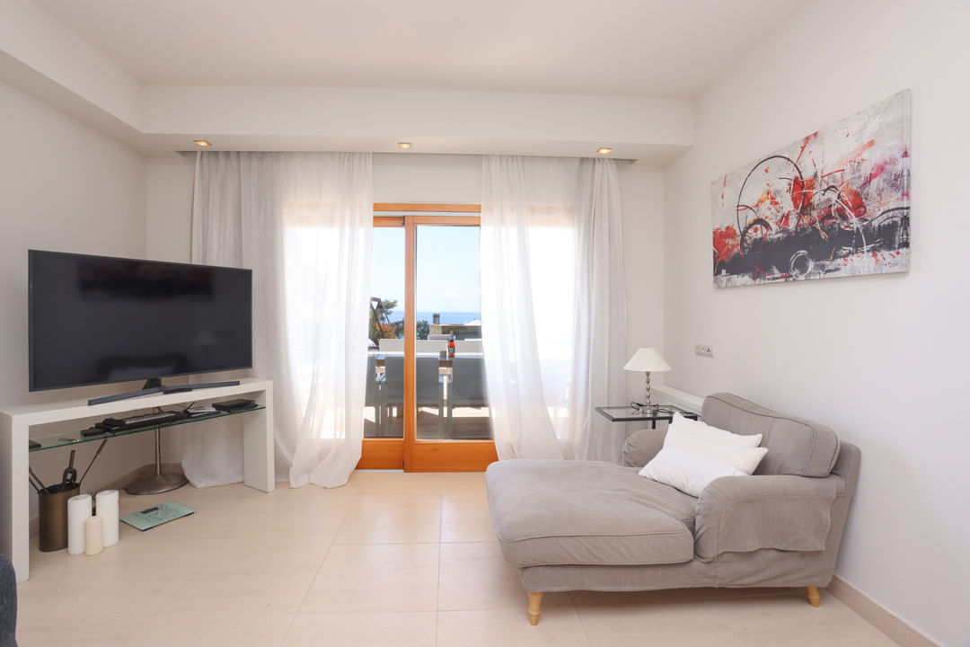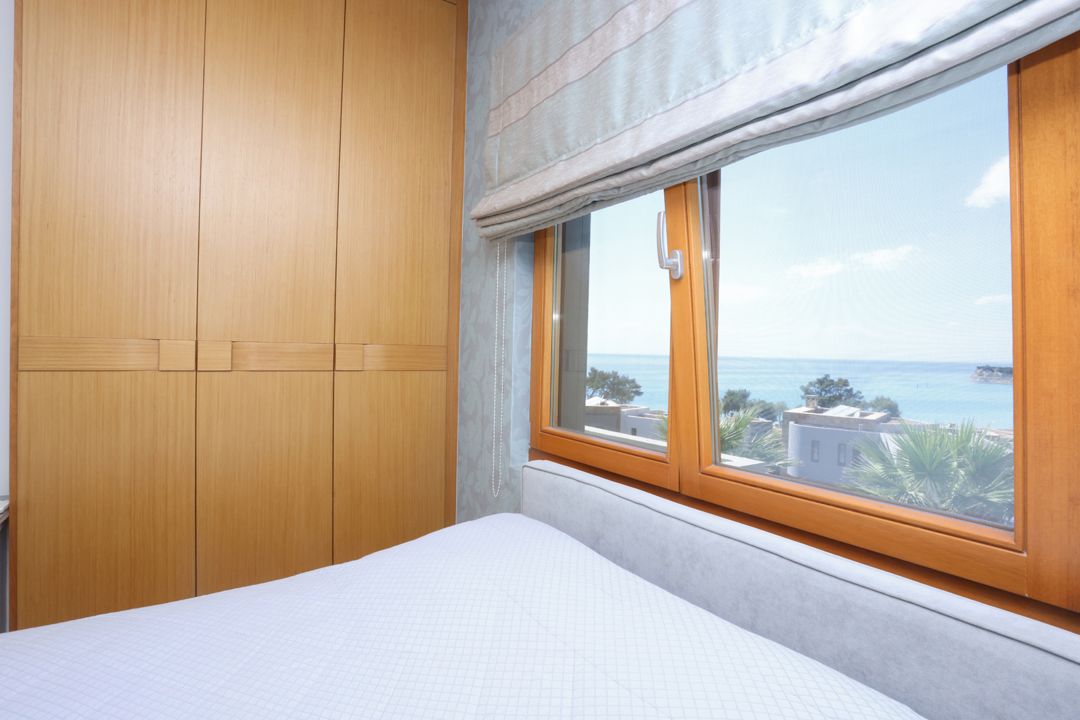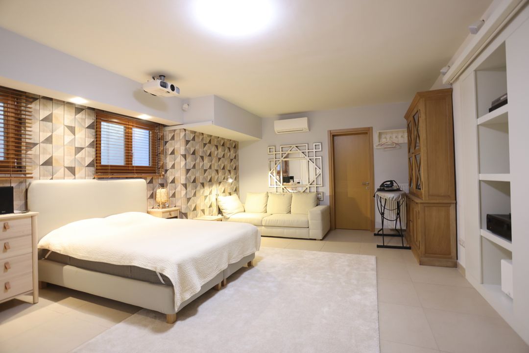 - 4th master bedroom with a double bed, private bathroom, furniture, TV, desk, and balcony with sea view