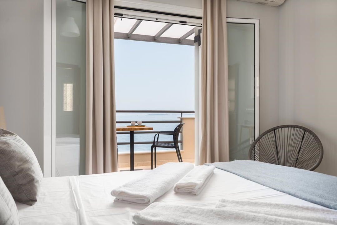 The complex is located on the northeastern coast of Corfu in the Glyfa area, conveniently positioned between the well-known seaside resorts of Barbati and Nissaki. Nestled at the foot of Mount Pantokrator, surrounded by olive trees and offering spectacular views of the Ionian Sea and Corfu town in the distance, the complex provides a peaceful retreat, just steps away from Glyfa’s pebble beach.
