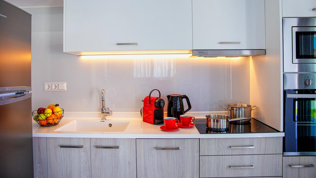- Oven, Microwave, Large refrigerator and freezer, Dishwasher, Espresso machine, Toaster, Kitchenware