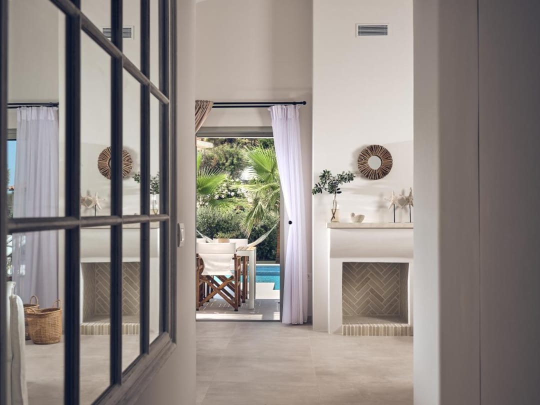 You can enjoy a uniquely soothing view of the sea from your living room or bedroom as you wake up ready for new and fascinating experiences! The sea view is prevalent from many of the rooms in the villa, although the true experience of the sea breeze is when guests step out into the manicured outdoor space, where they will also find a spectacular swimming pool. Sun loungers and the proximity of the beach complete the fantastic setting in which the villa awaits its visitors.