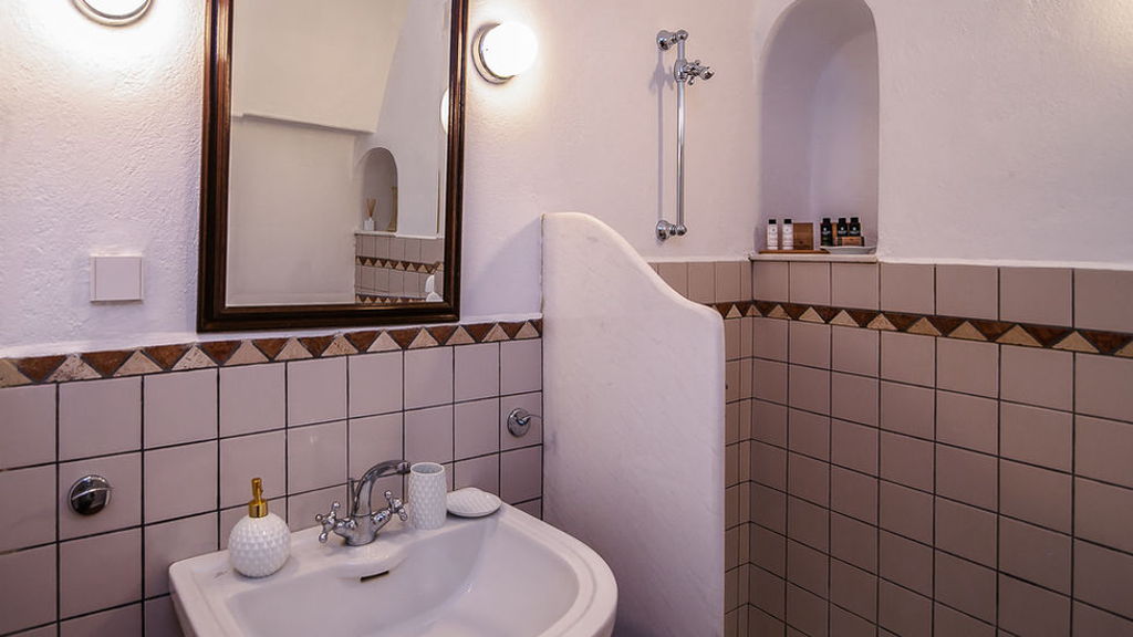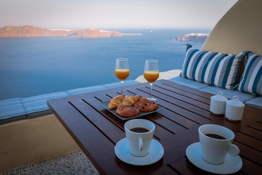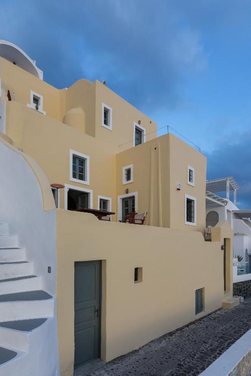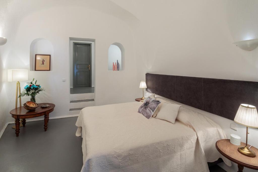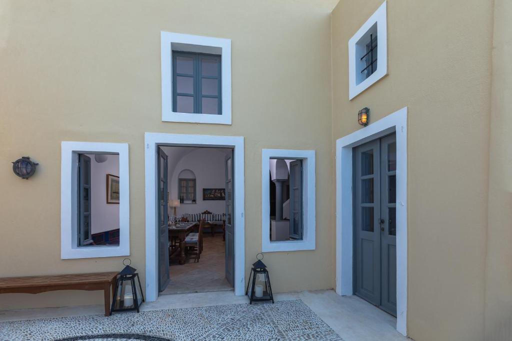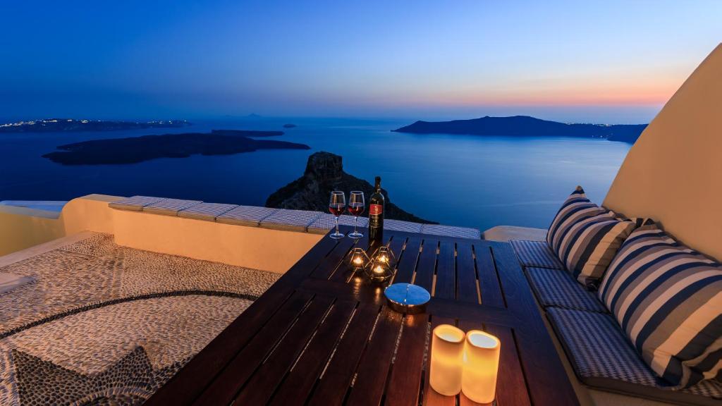 Two-floor villa with three private terraces gives you an opportunity to watch the world-famous sunset and have a panoramic view of the island and the caldera.