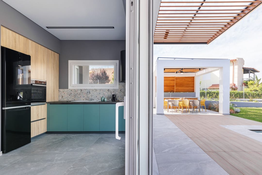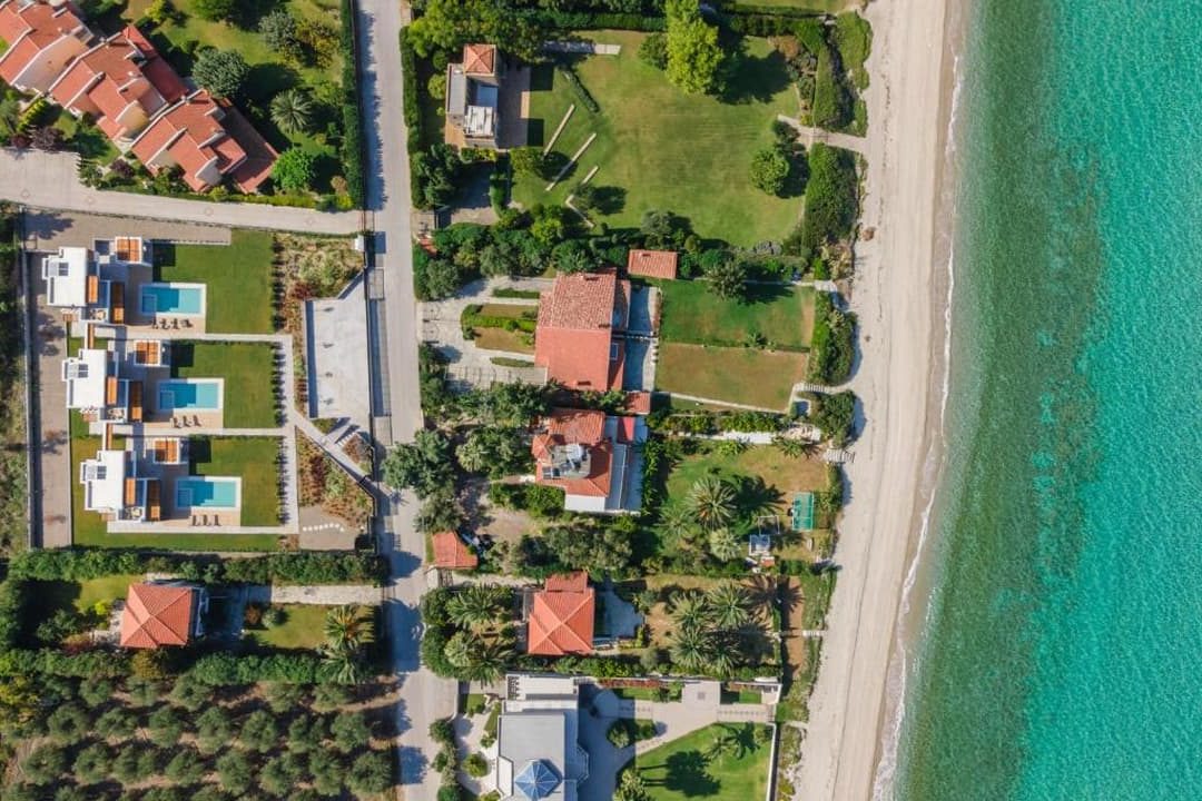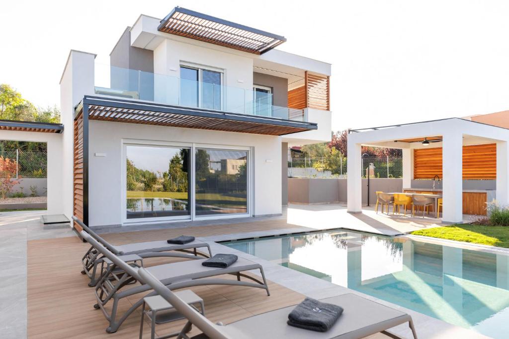 Wonderful luxury Villa Perla with 3 bedrooms and a private pool, located just 50 meters from the sandy beach, near the village of Polychrono, on the peninsula of Kassandra, Halkidiki, for rent.
