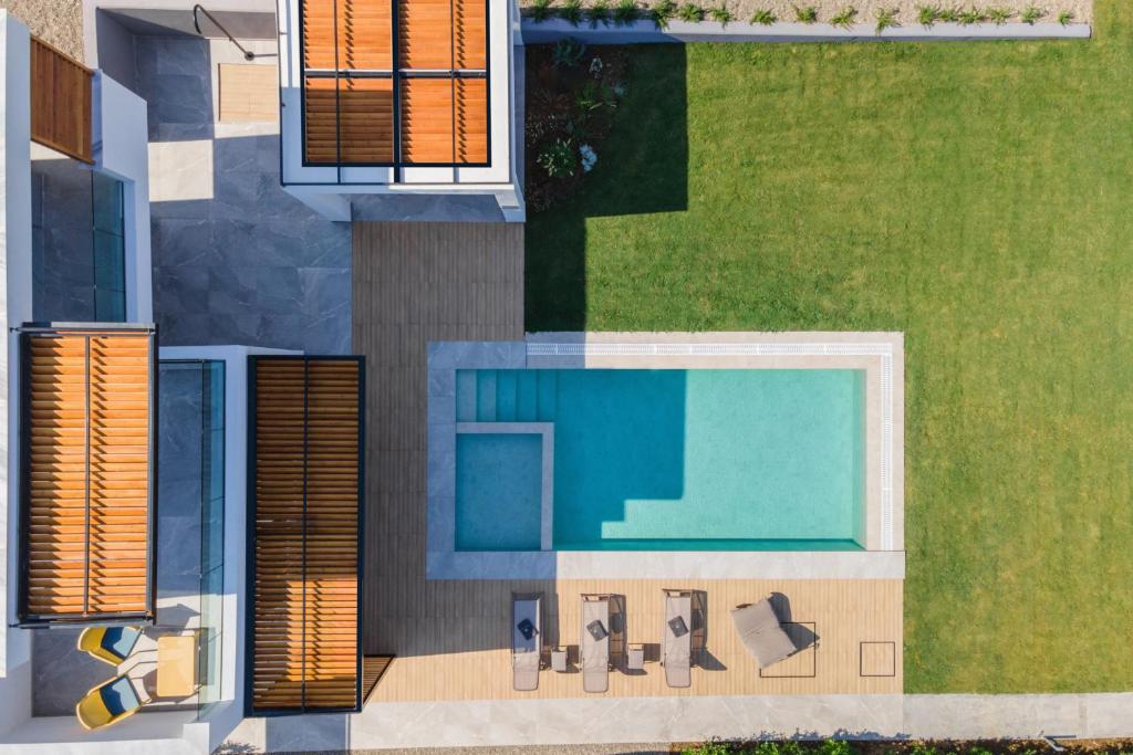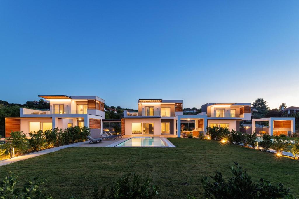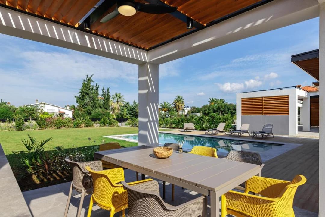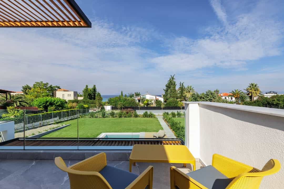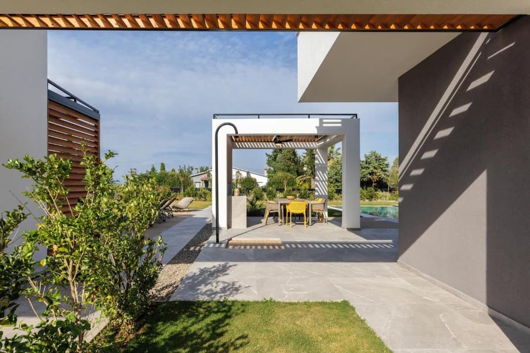 The villa is located in a new complex of three villas. Each villa has its territory with a swimming pool, patio, summer gazebo, and sea view. Location on the second coastline, two minutes walk from the sea.