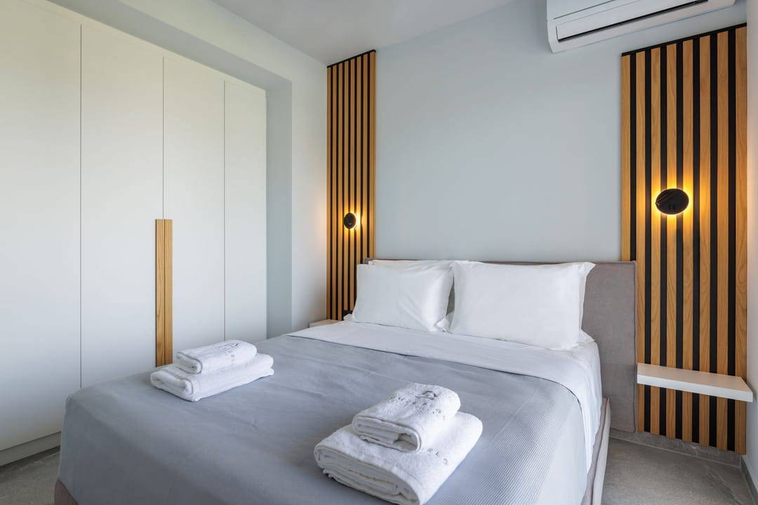 - 3rd bedroom with double bed and balcony with sea and garden views