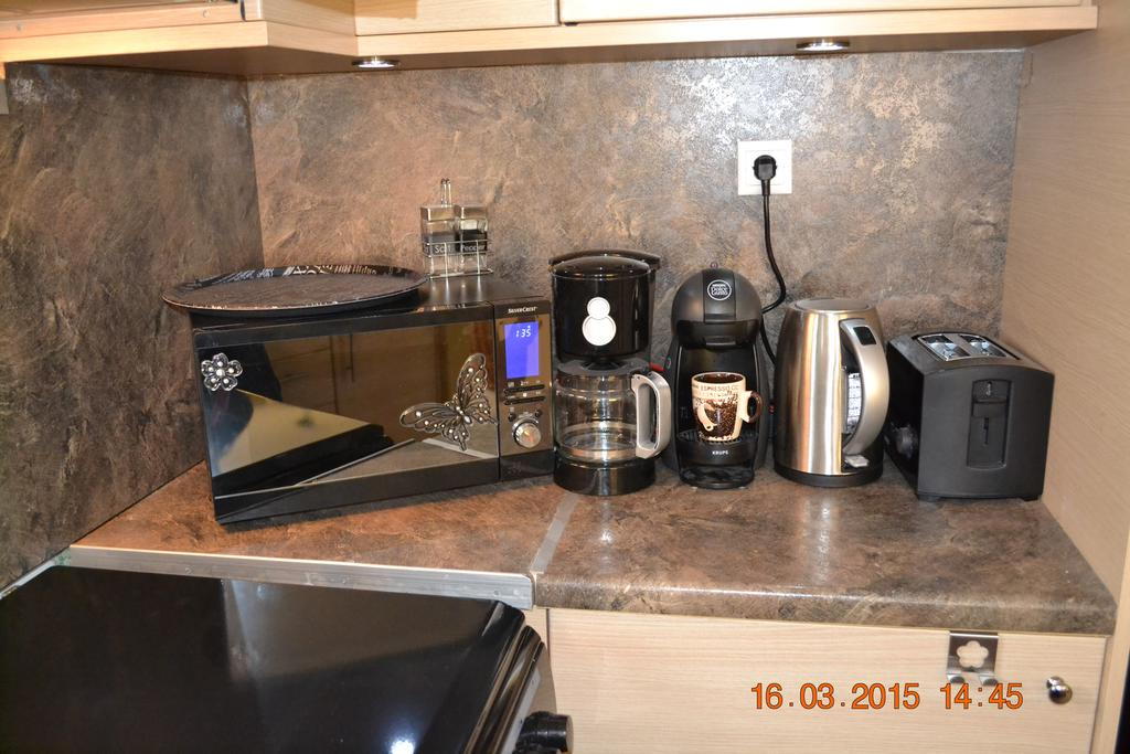 - Refrigerator, oven, stove, kitchen hood, electric kettle, set of pots and pans, Εspresso Dolce Gusto and filter coffee maker, dishwasher