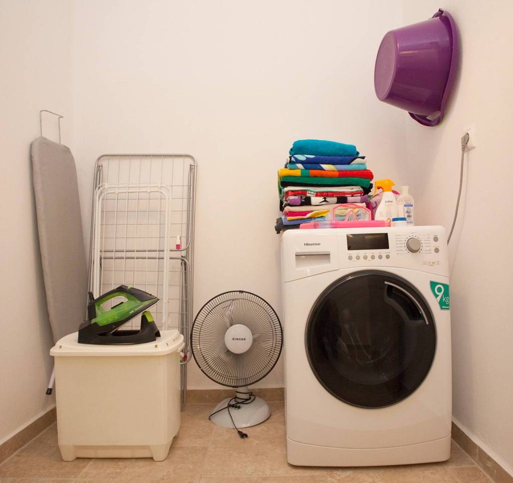 - Washing machine, iron and ironing board, hairdryer