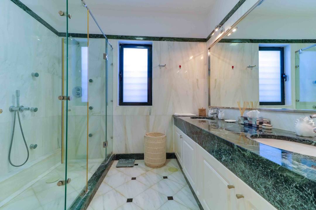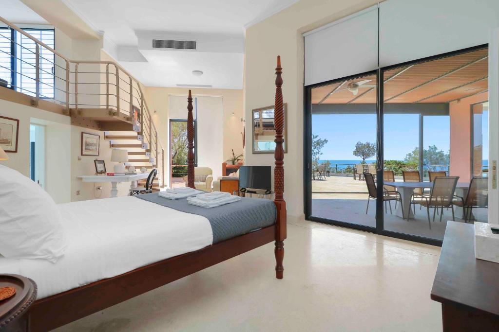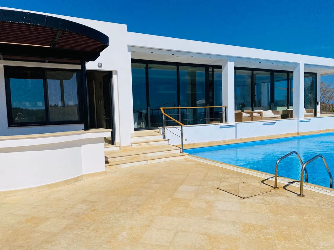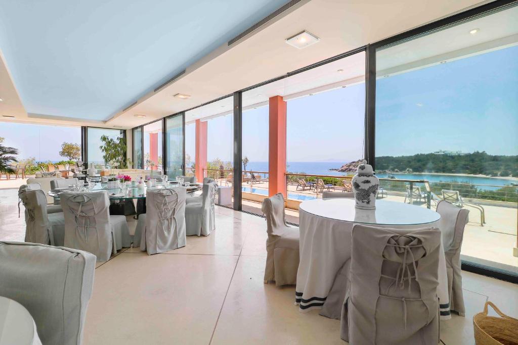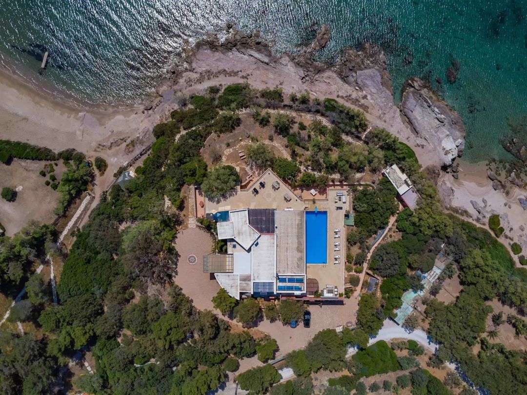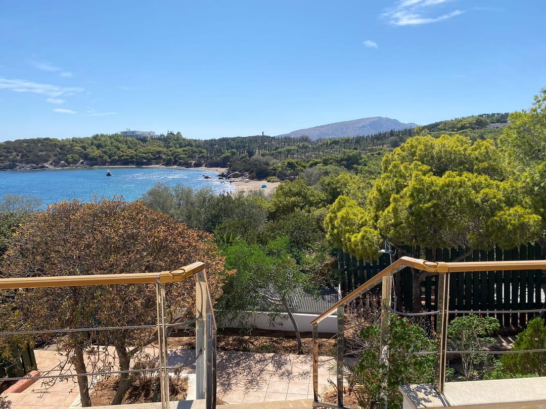 Gorgeous spacious Poseidon Villa with 6 bedrooms, a swimming seawater pool and private access to the sandy beach, on the Athens Riviera, for rent.