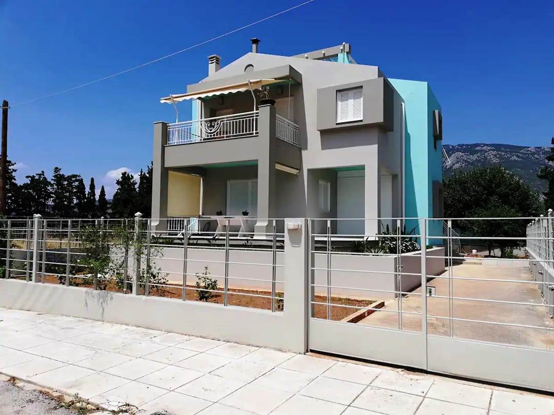 New, modern villa Proton with 4 bedrooms and beautiful views, in the famous thermal resort Loutraki, only 1-hour drive from Athens, for rent.