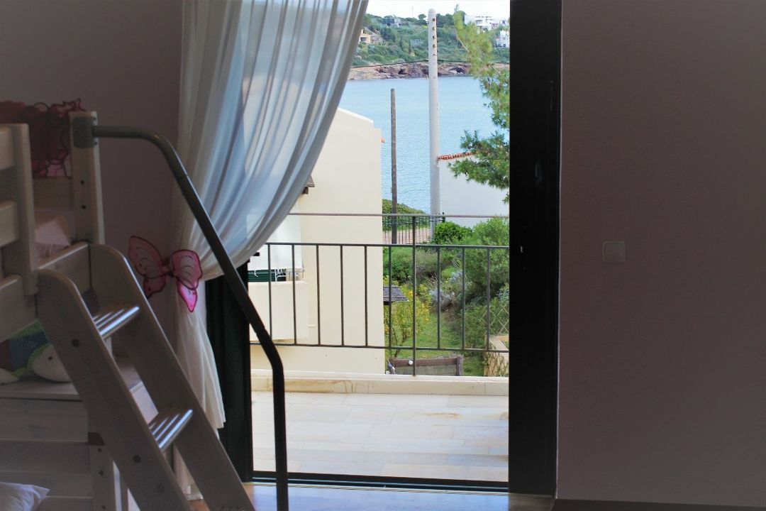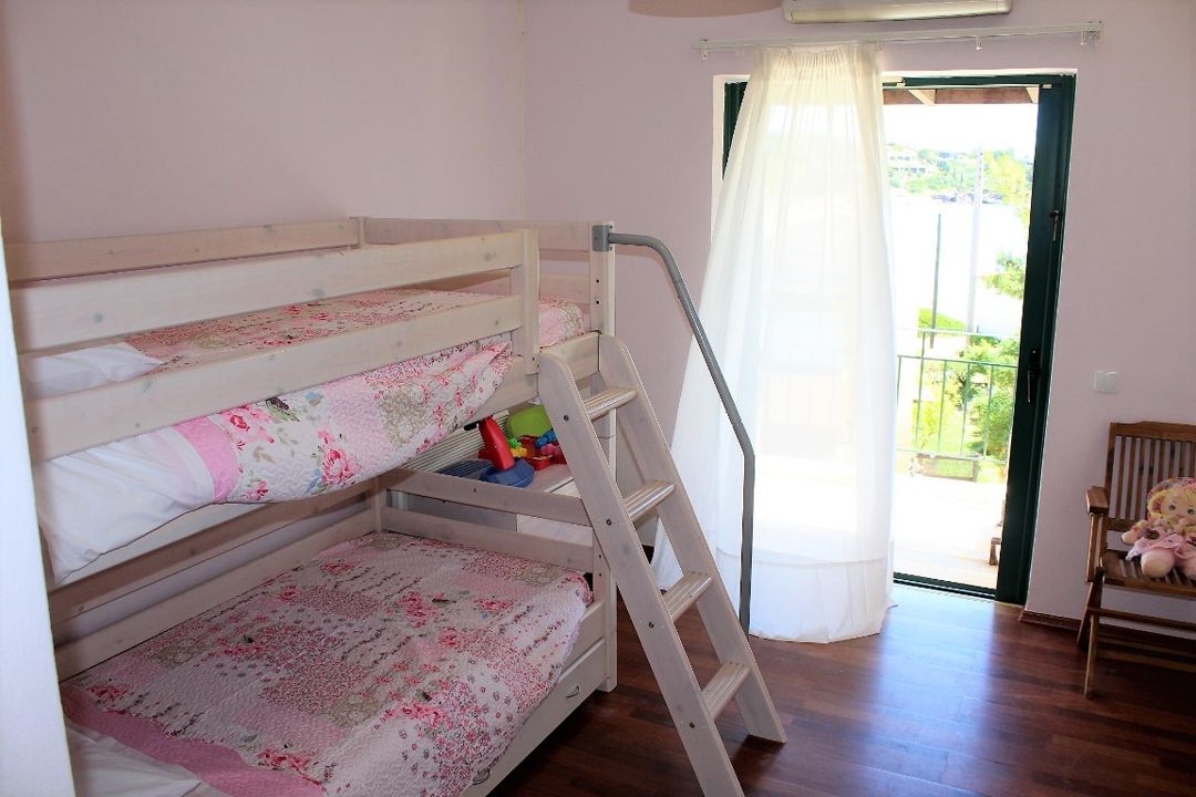 - 3rd bedroom with a bunk bed and a balcony overlooking the sea
