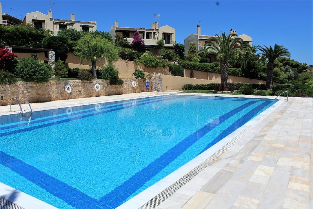 The residential complex is a combination of turquoise sea and green mountain landscape, peace and tranquillity. It is on the first line of the sea at the sandy beach of Pasha bay in the resort of Sounio. Between the beach and the gates of the complex, there is no roadway, you can go directly from the complex to the beach. The beach is sandy and not deep with a gentle entrance to the sea and a shadow of trees, ideal for relaxing with children of any age.