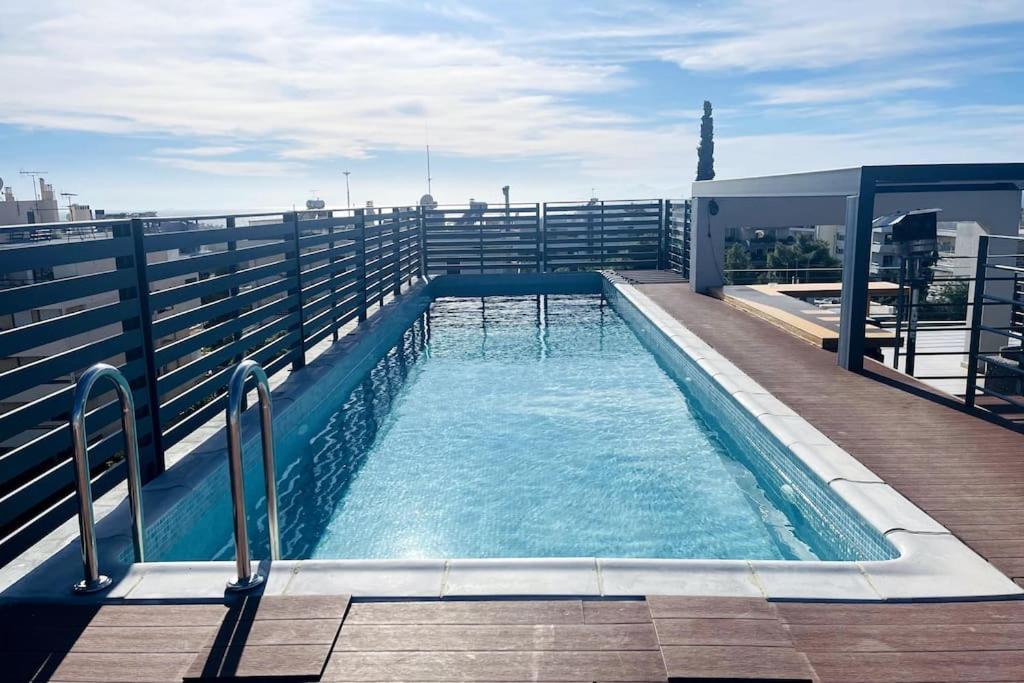 Modern, spacious penthouse Ria with 3 bedrooms and a roof-top private pool, offering breathtaking sea view, located in Voula, one of the most privileged areas of Athens Riviera, for rent.