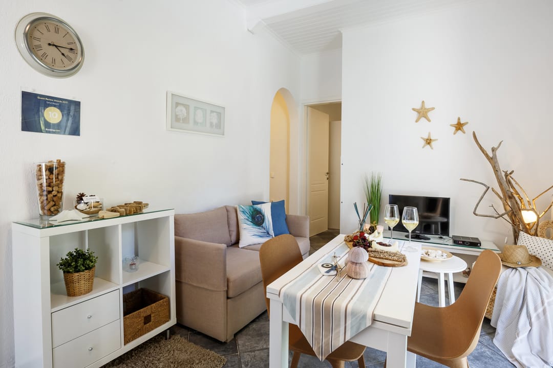 - Living room with TV and double sofa bed