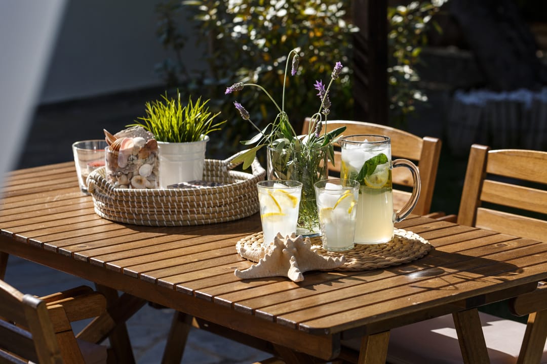 - Furnished terrace with dining table and chairs