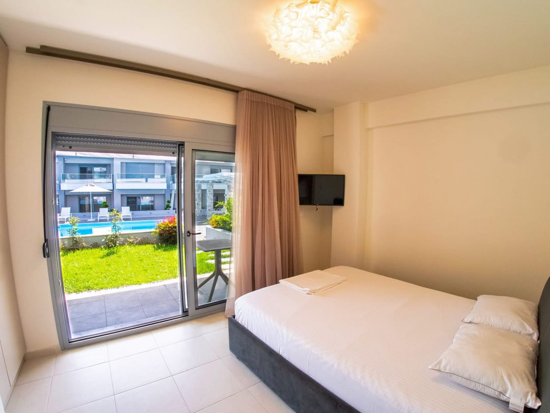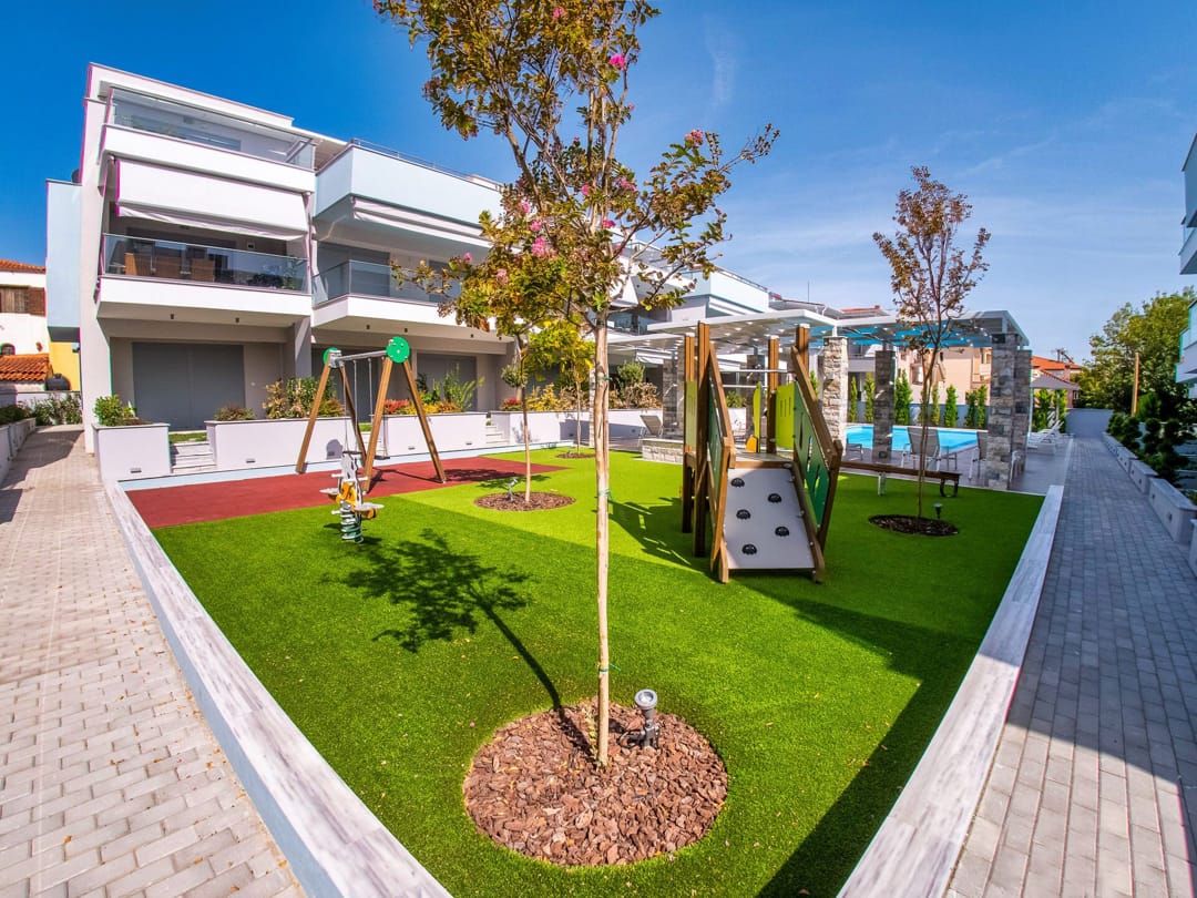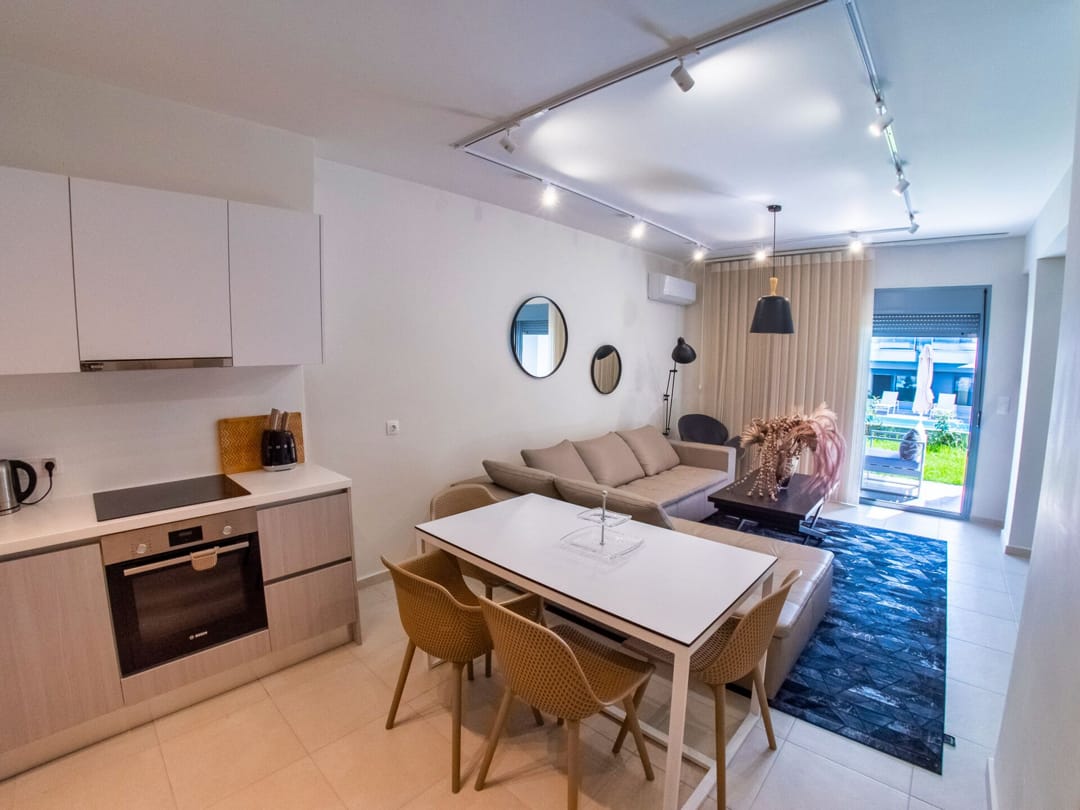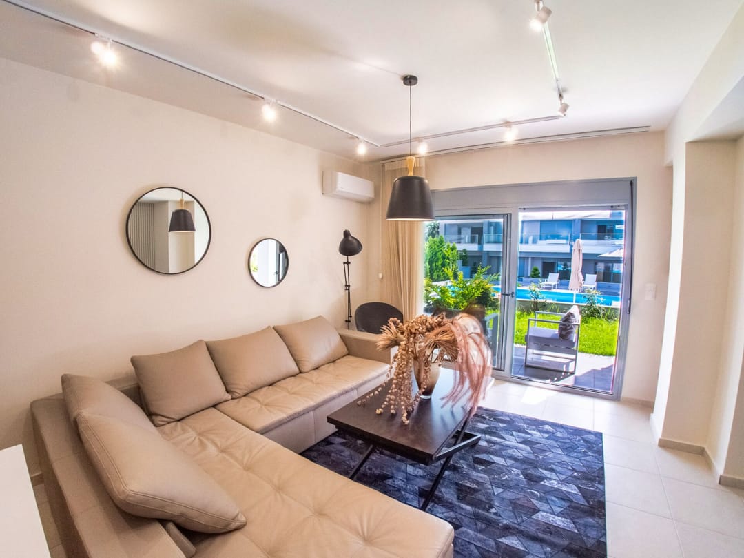 New comfortable apartment Rika with 2 bedrooms, in a complex with a shared pool and children’s playground, in the village of Nikiti on the peninsula of Sithonia, Halkidiki, for rent.