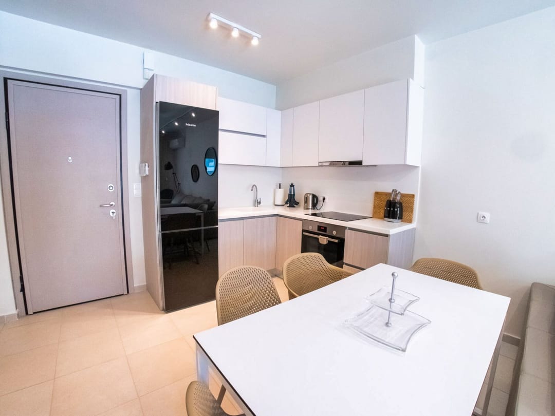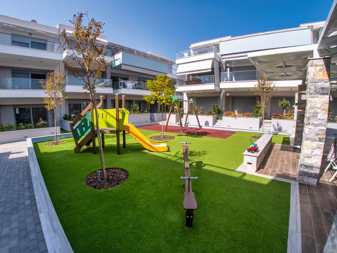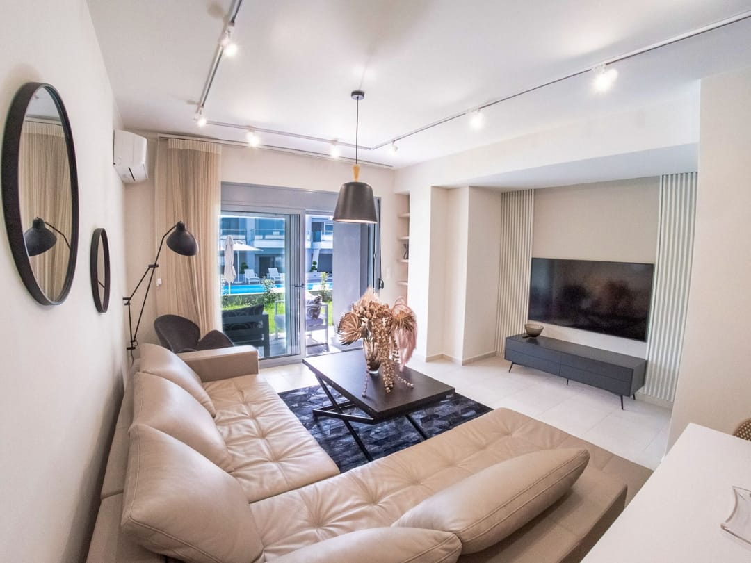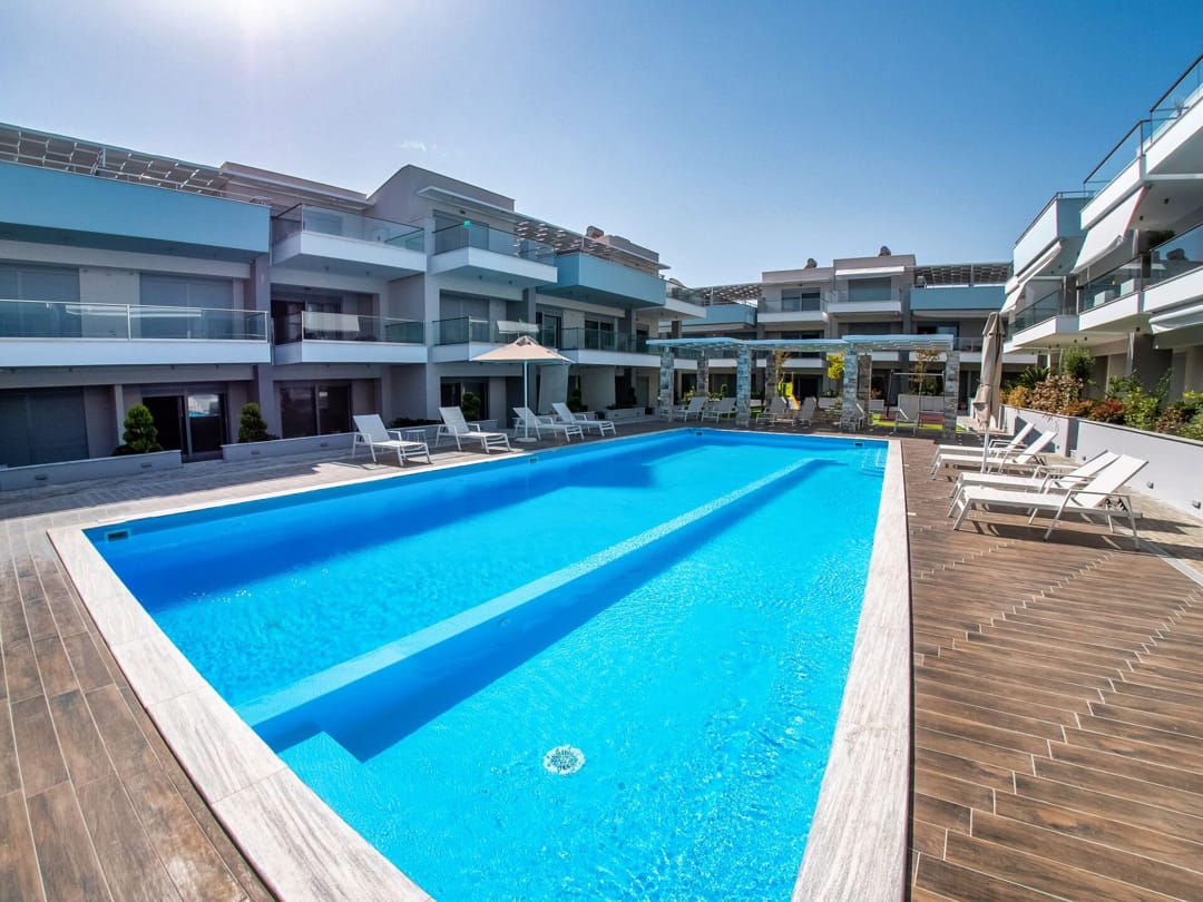 New comfortable apartment Rika with 2 bedrooms, in a complex with a shared pool and children’s playground, in the village of Nikiti on the peninsula of Sithonia, Halkidiki, for rent.