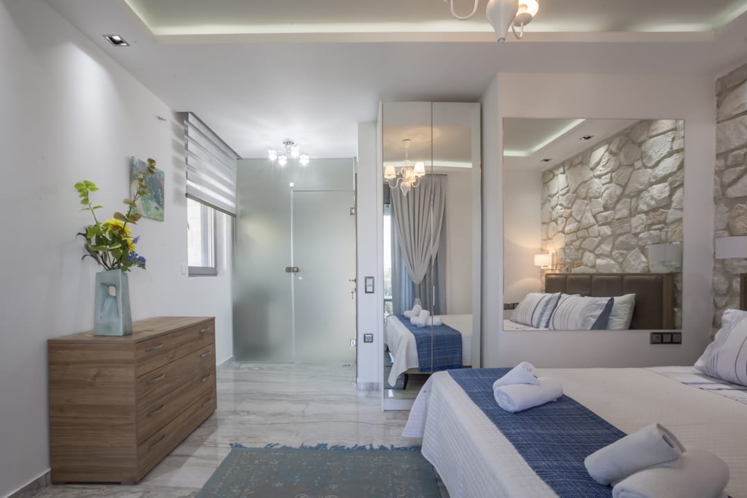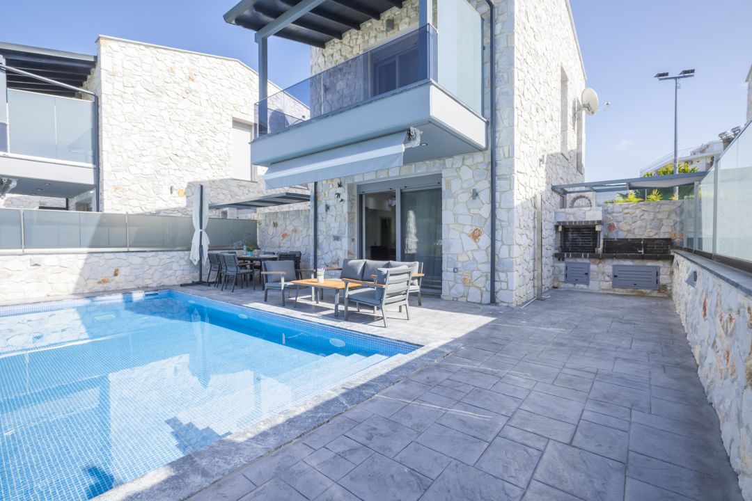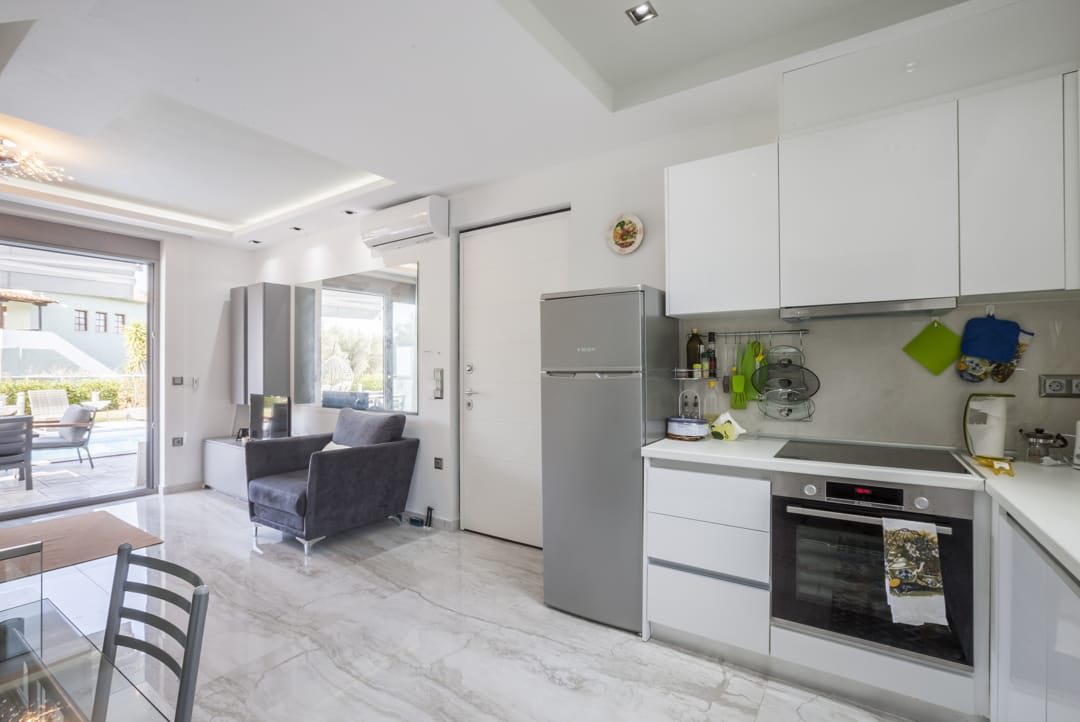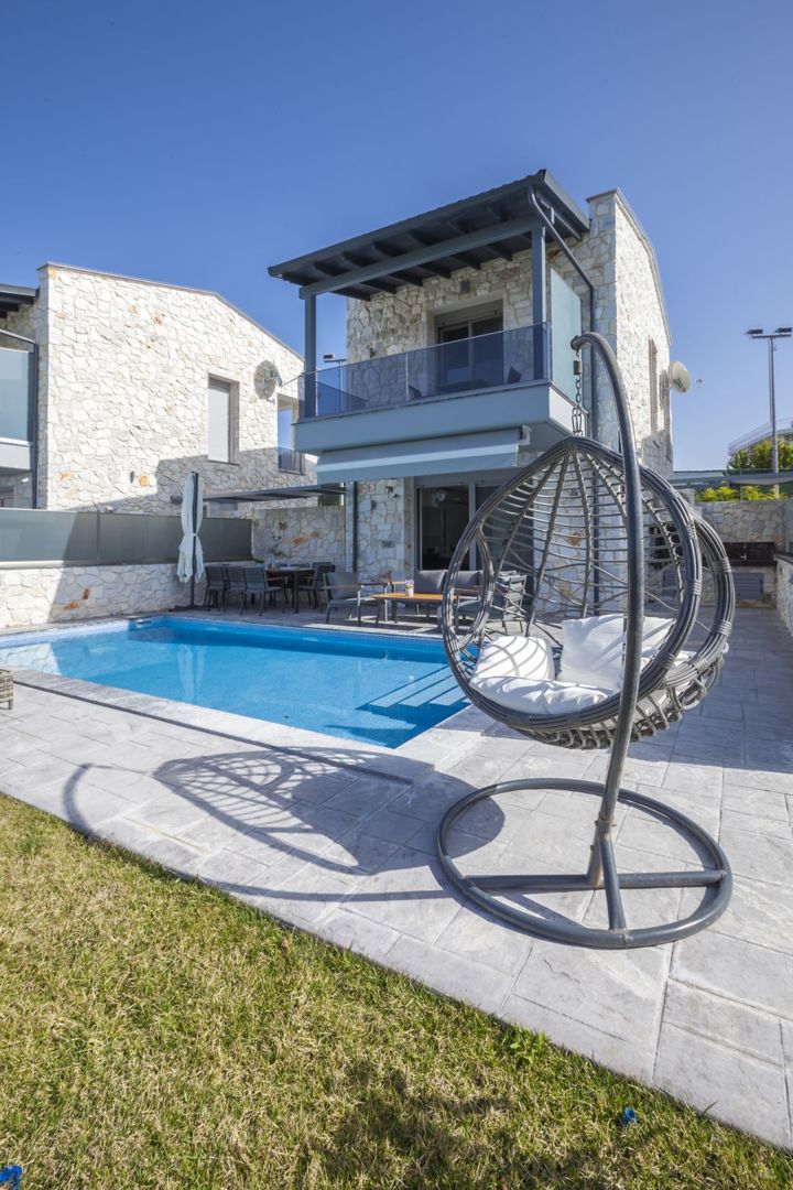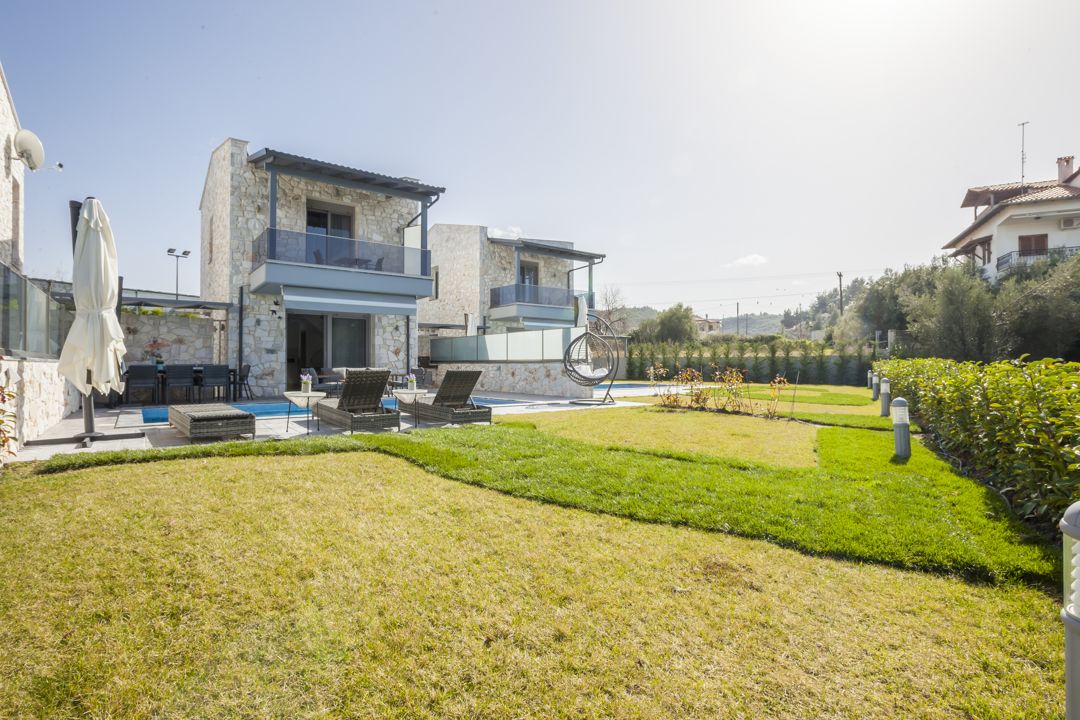 New luxury villa Ritria with 3 bedrooms and a private pool, 50 meters from the beach in the Hanioti area, on the Kassandra peninsula, Halkidiki, for rent.
