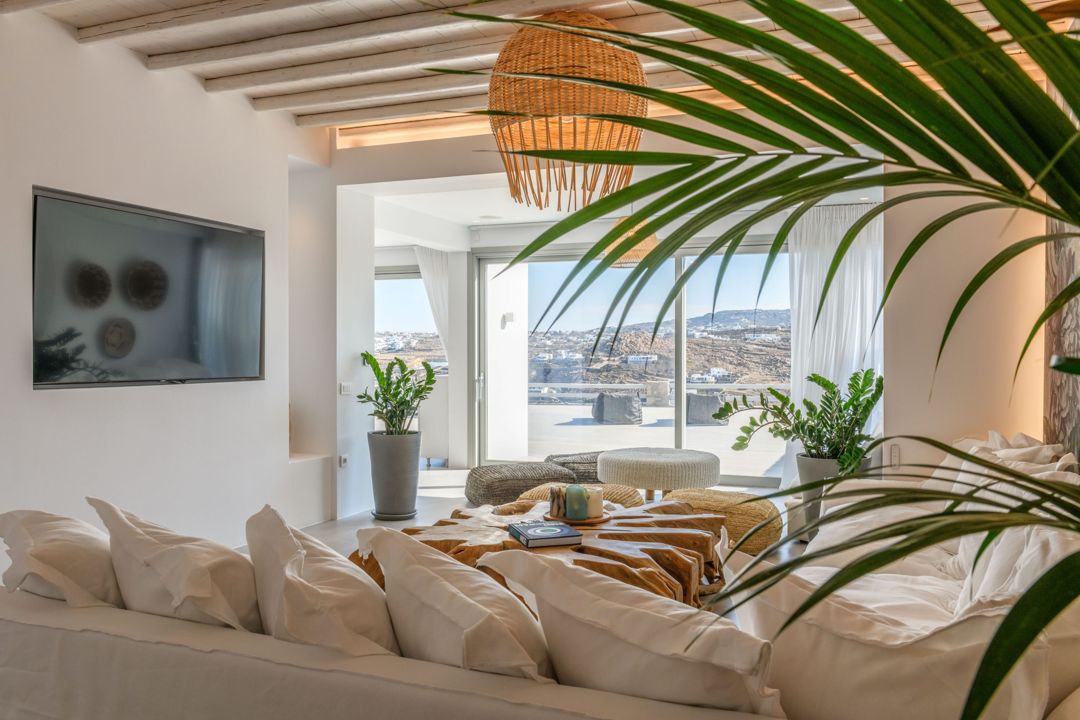 The Villa is idyllically located on a hill, affording dazzling panoramic views and specially designed for discerning guests seeking the ultimate summer experience in Mykonos. The elevated position grants both great views over the Aegean Sea and Mykonos Town with a great level of privacy, both of which can be enjoyed from the various outdoor spaces.