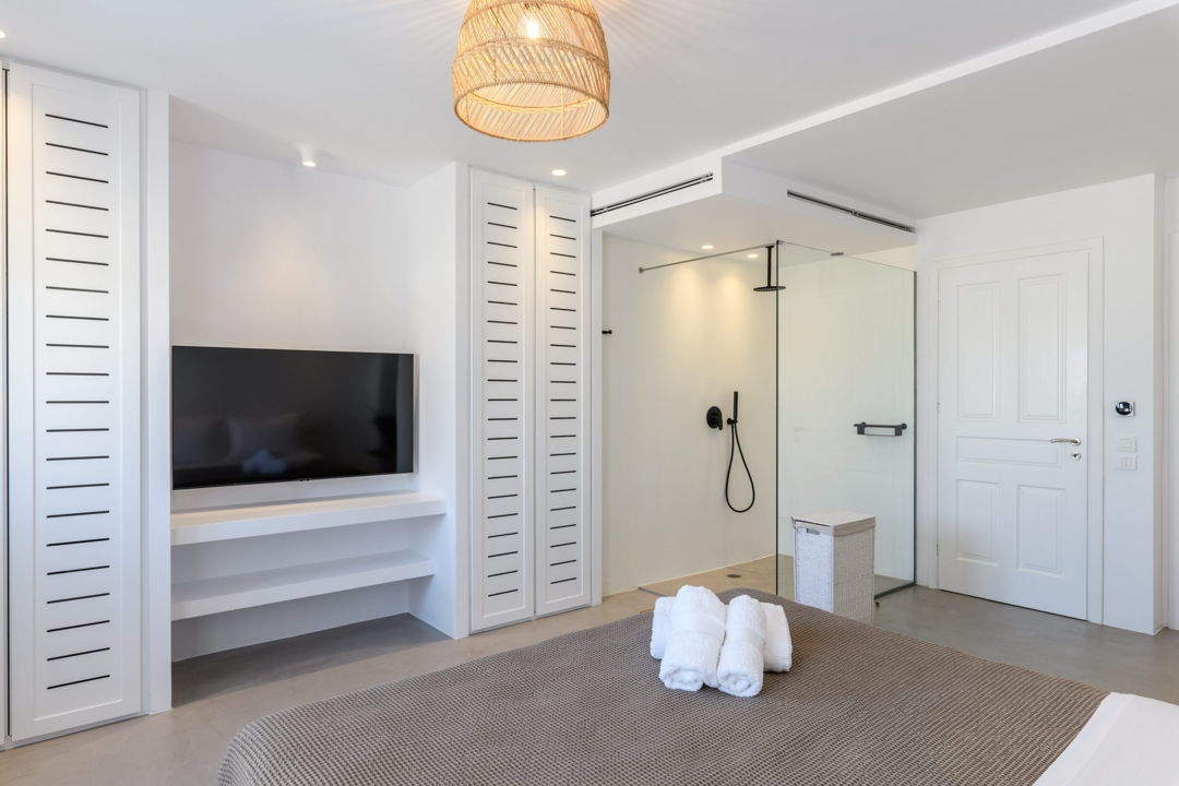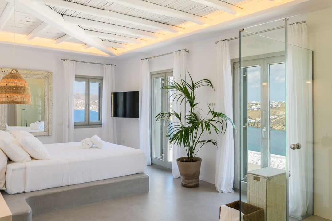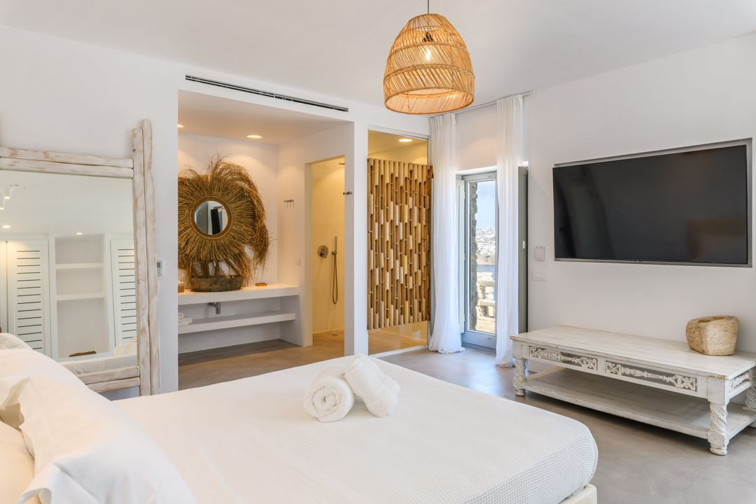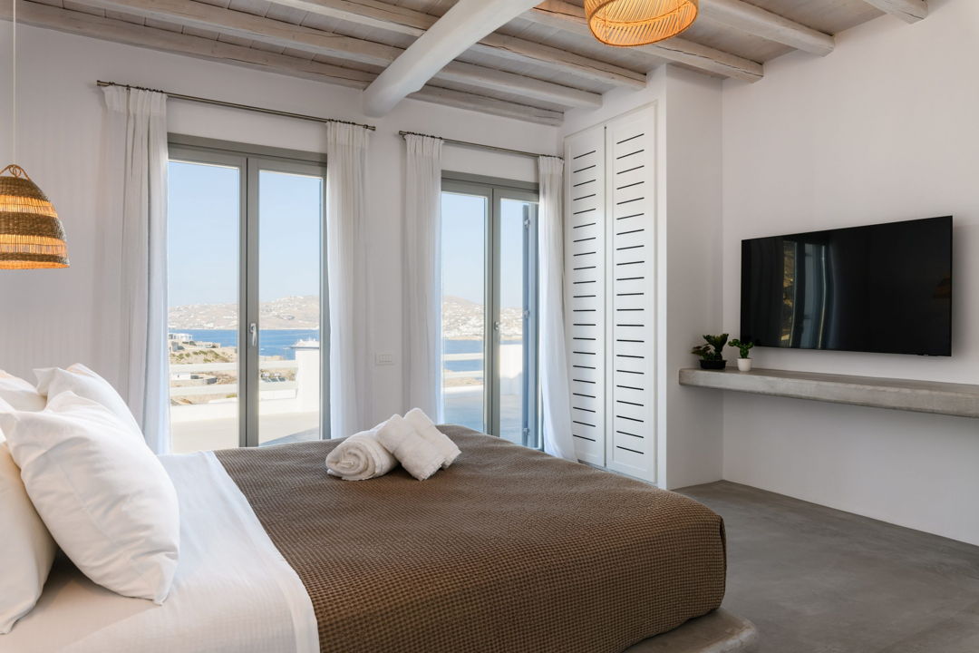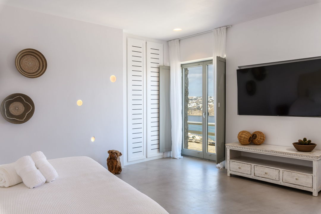 - A balcony that enjoys beautiful views of the sea and Mykonos town