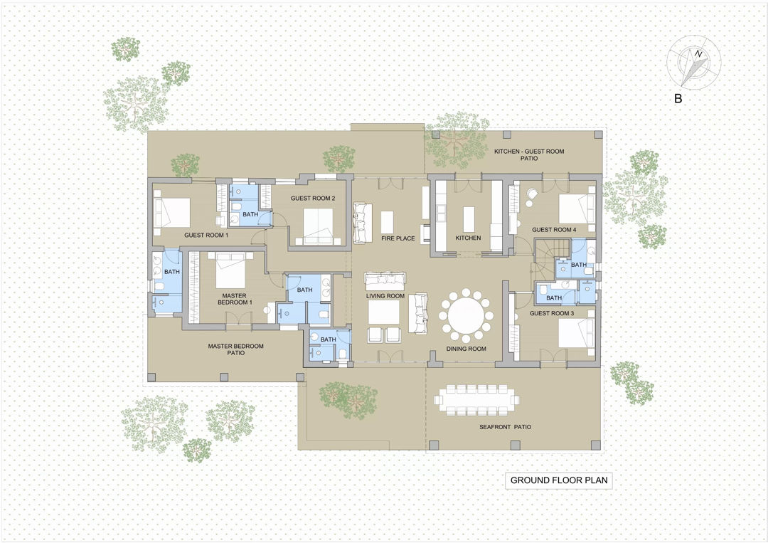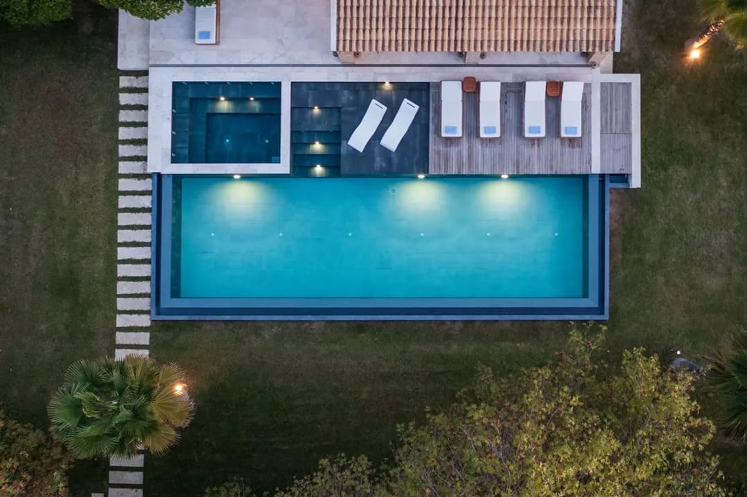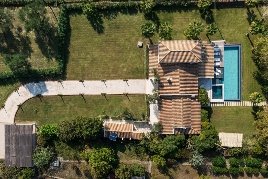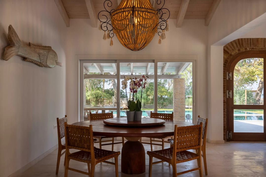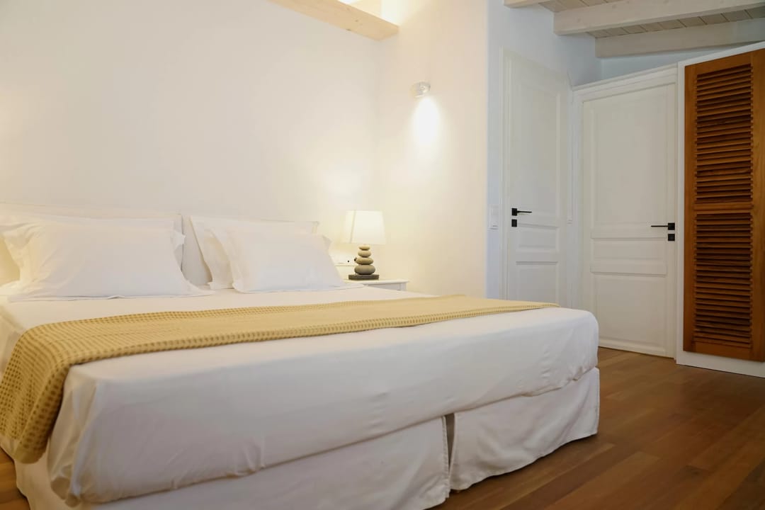 Strategically positioned next to the sandy beach, the villa ensures a constant connection with the sea. Open your estate’s door and let the gentle island breeze and the scent of fresh linen enhance your relaxation on the comfortable furniture. Indulge in a memorable dinner with loved ones in the refined dining room, or savor a glass of wine beside the chic fireplace. When you’re ready for a swim, follow the path to the private entrance of the sandy beach. Relax under your exclusive beach gazebo, lounge on the luxurious sunbeds, dip into the azure waters of the Ionian Sea, and enjoy a refreshing drink while your toes sink into the soft, golden sand.