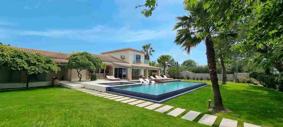 Spacious Beachfront Sami Villa with 6 bedrooms, private pool, and Jacuzzi on the Corfu island for rent.