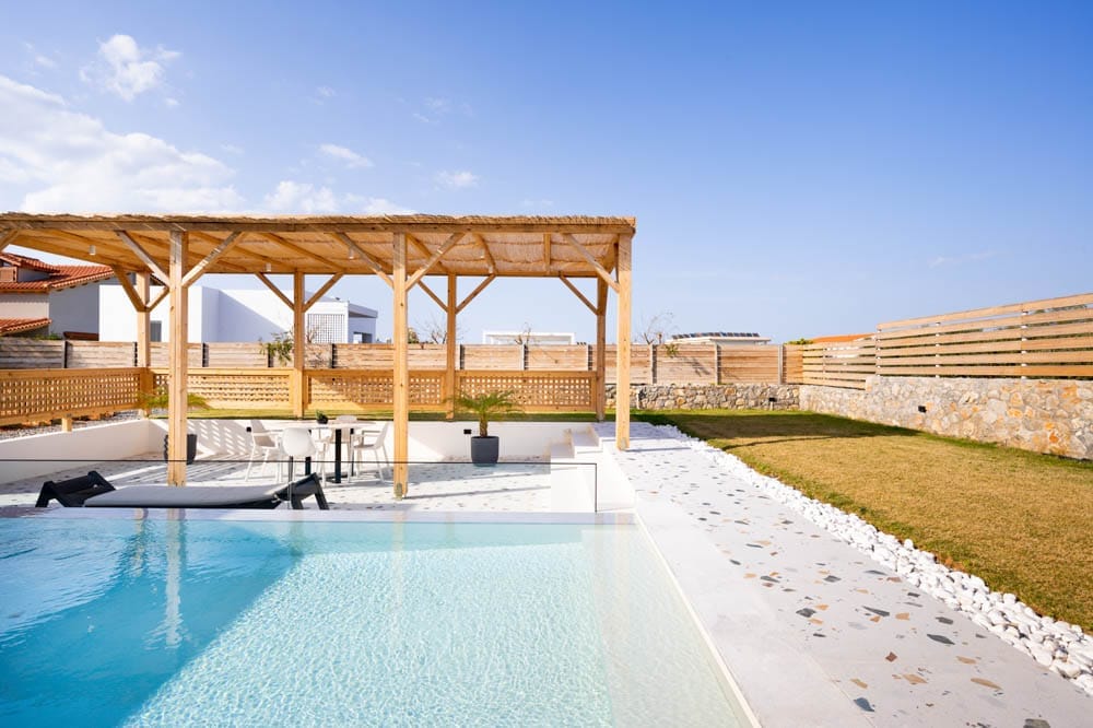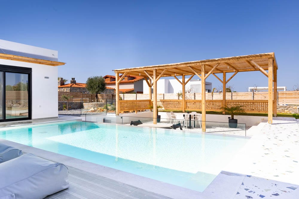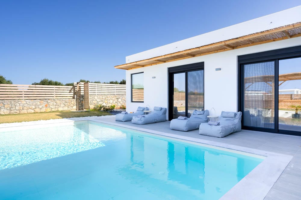 All 3 villas include a private garden with a swimming pool, parking space, and free WiFi connection.
