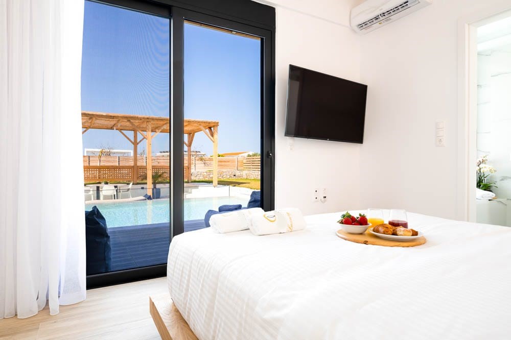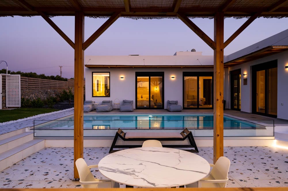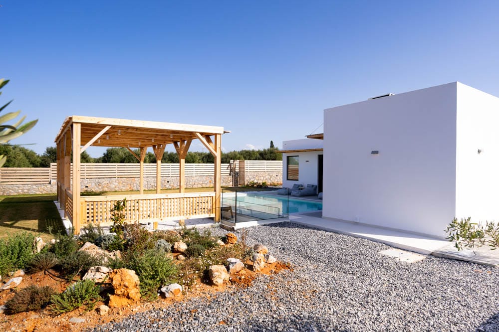 Brand-new modern villa Sara-Due, with 2 bedrooms and a private pool, in the popular tourist village of Analipsi, the island of Crete for rent.
