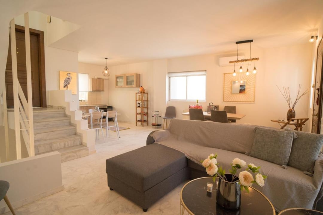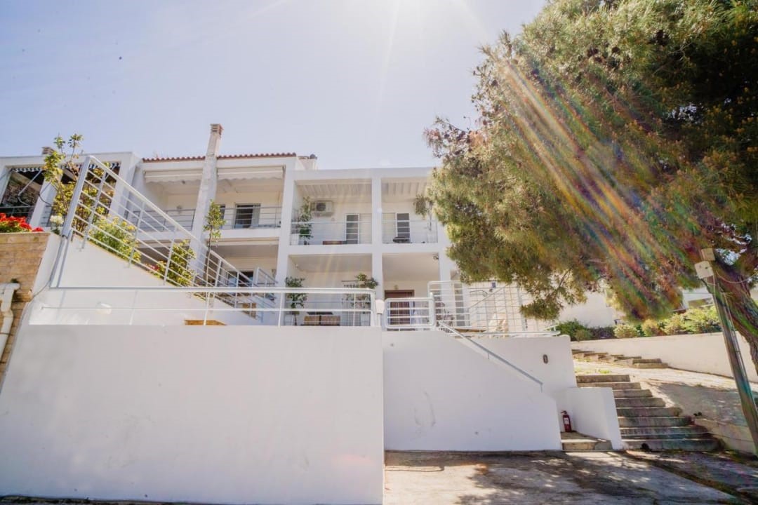 Comfortable maisonette Sara with 4 bedrooms and a terrace overlooking the sea, 100 meters from the beach, in Saronida village, on the Athens Riviera, for rent.