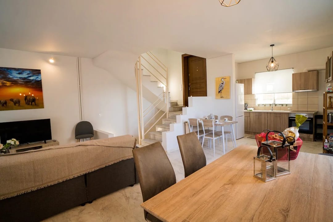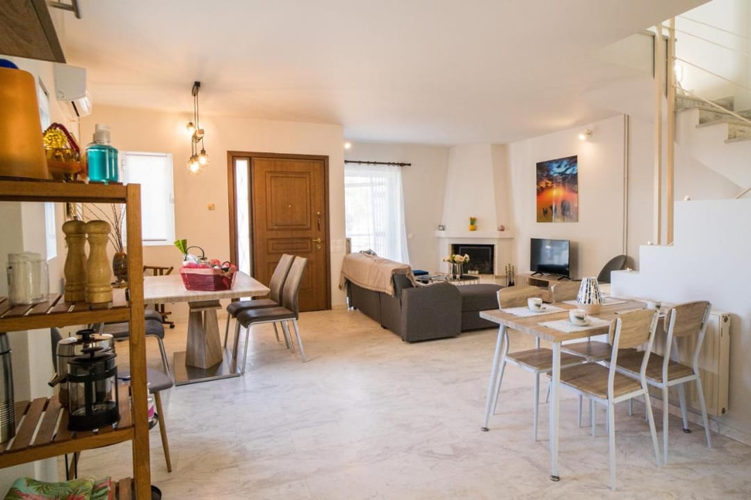 The resort village of Saronida, a popular summer resort, has developed infrastructure with many shops, taverns, and eateries, as well as several beaches. The house is located 300 meters from the central square of Saronida, where you will find taverns, cafes, and a supermarket. The beach is just 100 meters across the road, through an underground tunnel.