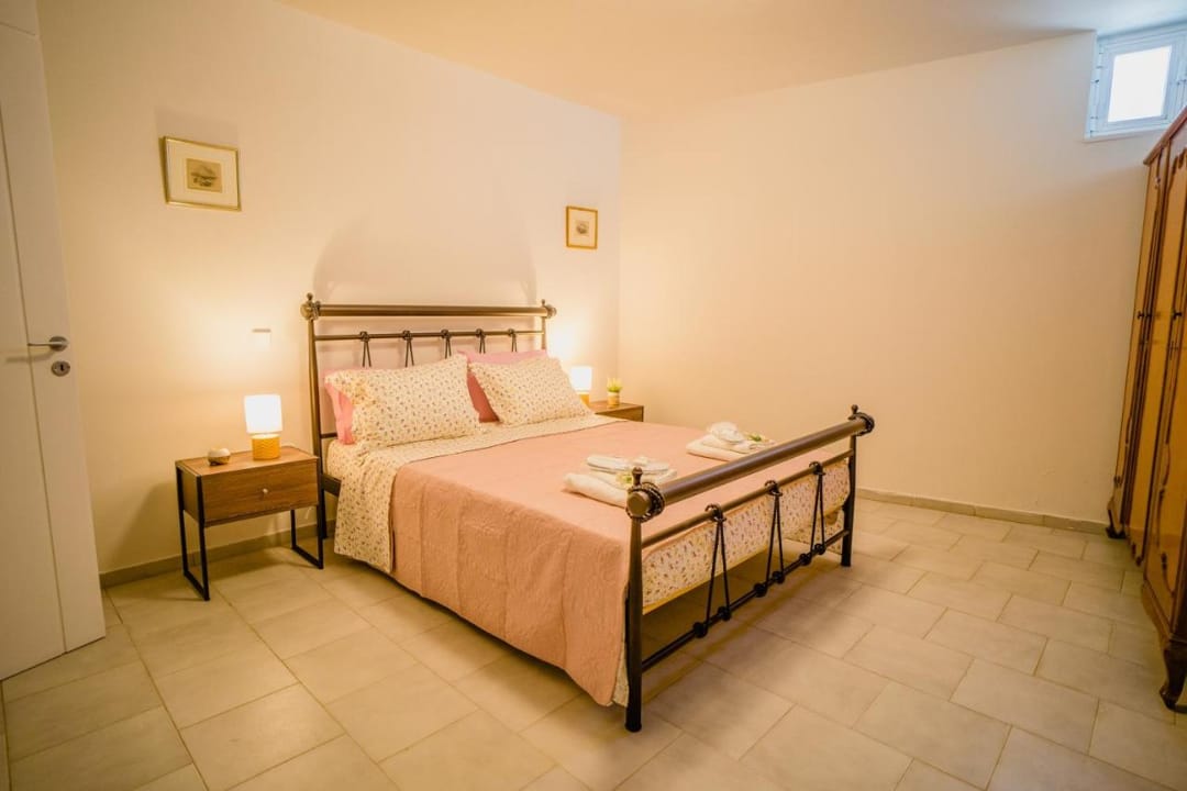 - 1st bedroom with double bed, small window, wardrobe