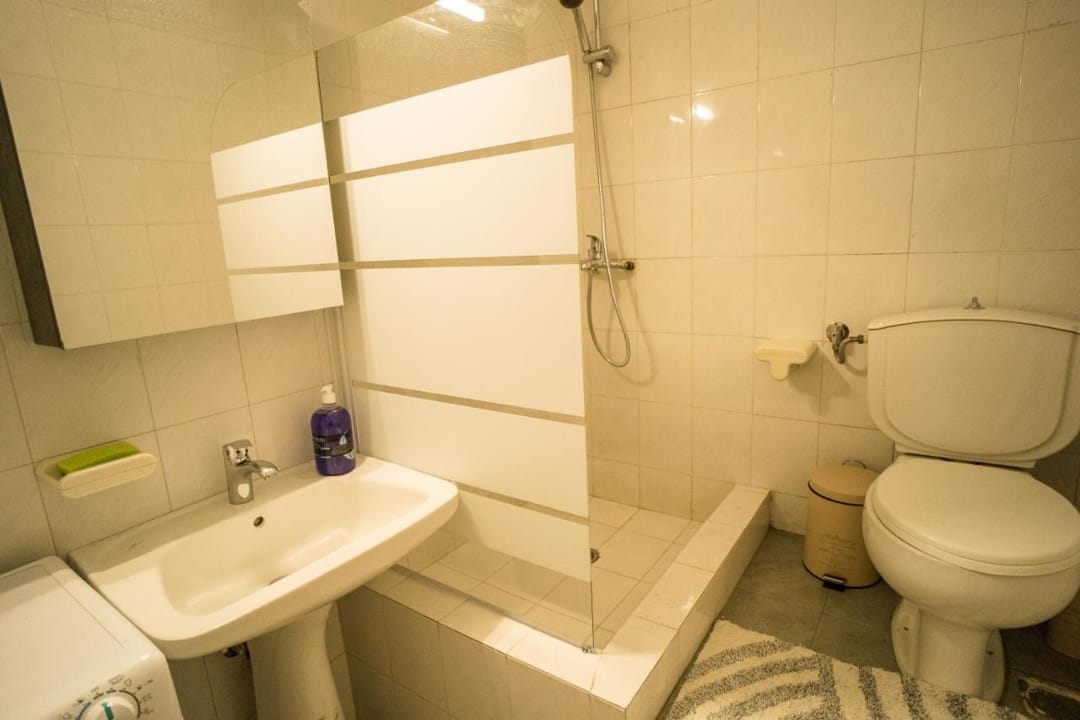 - Bathroom with shower, washing machine and dryer