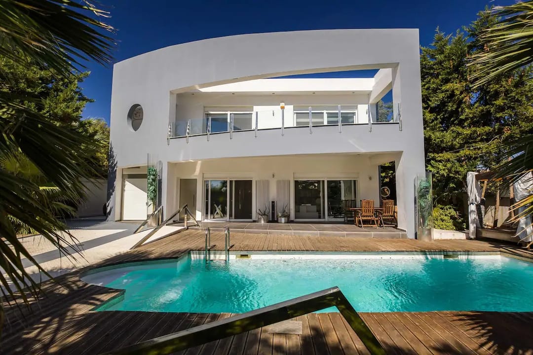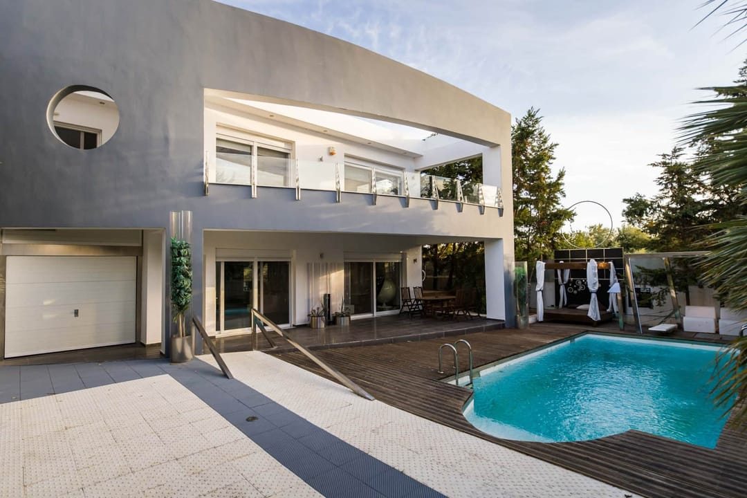 Modern stylish villa Seven with 4 bedrooms and a private pool, close to the famous sandy beach of Schinias, on the East Coast of Attica, for rent.