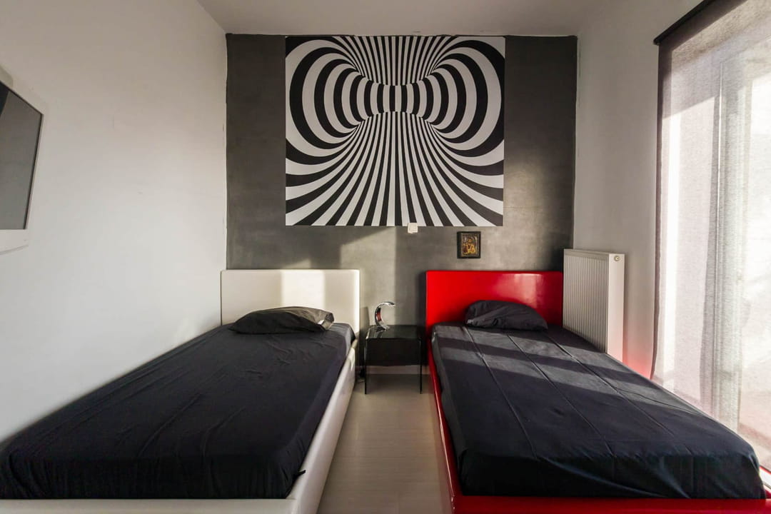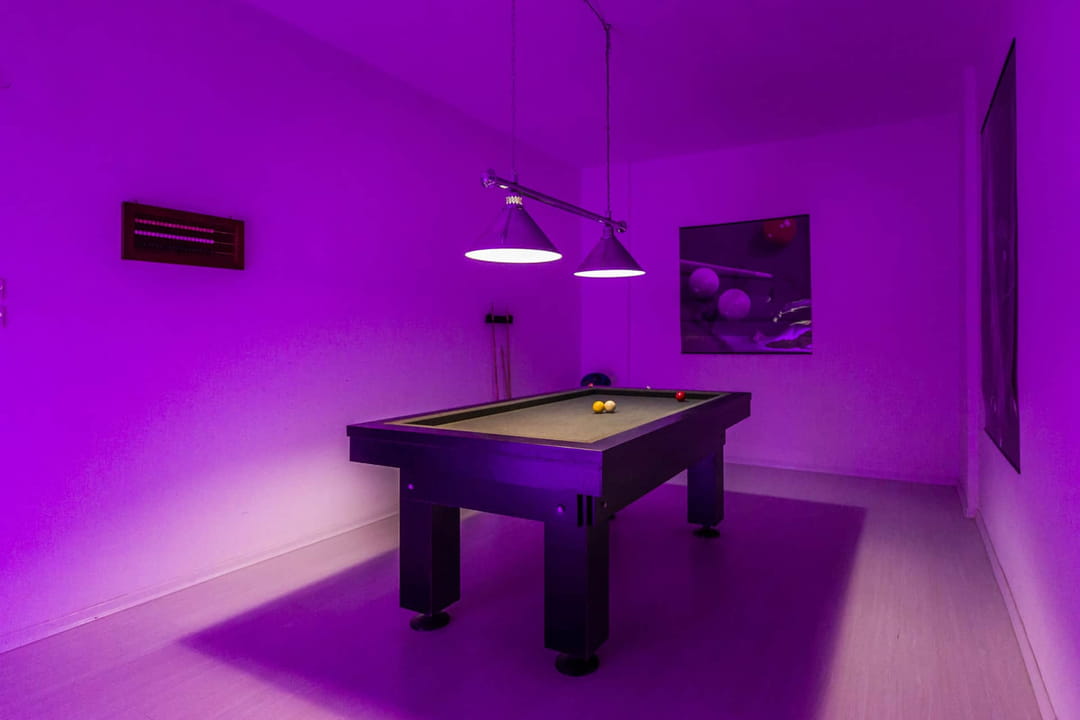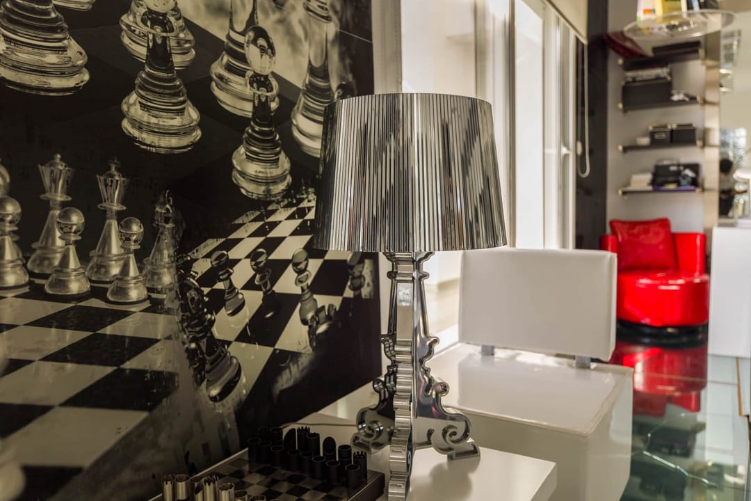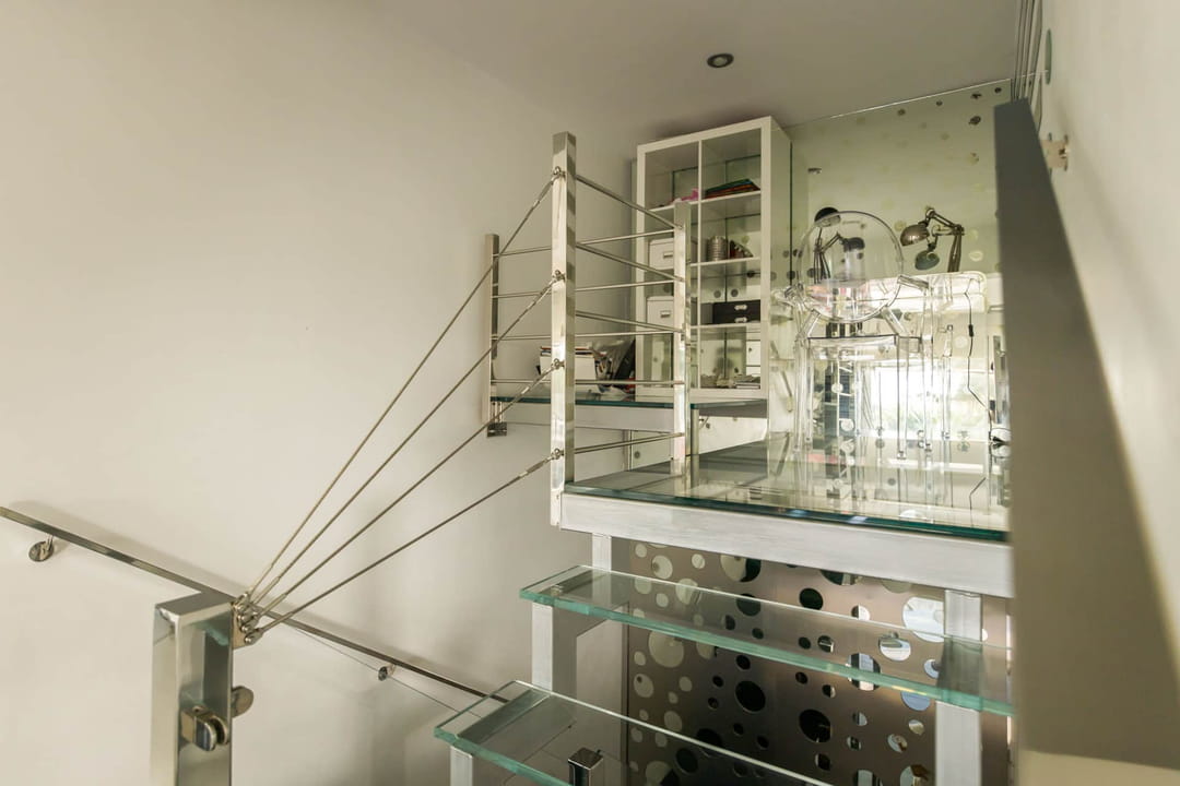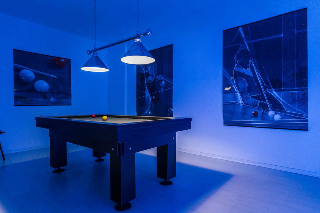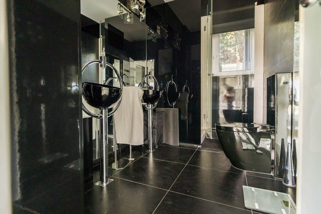 The interior decoration is based on a unique raster from absolute white to absolute black. With round beds, inox elements, glass doors, mirrors, glass floors, meteorites, home cinema, huge gym, play room with billiards and many TVs for the guests of the villa.