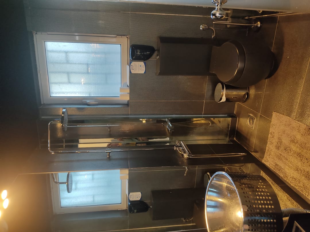 - Refrigerator/freezer, electric stove, oven, microwave, dishwasher, kettle, espresso coffee machine, cooking basics, dishes