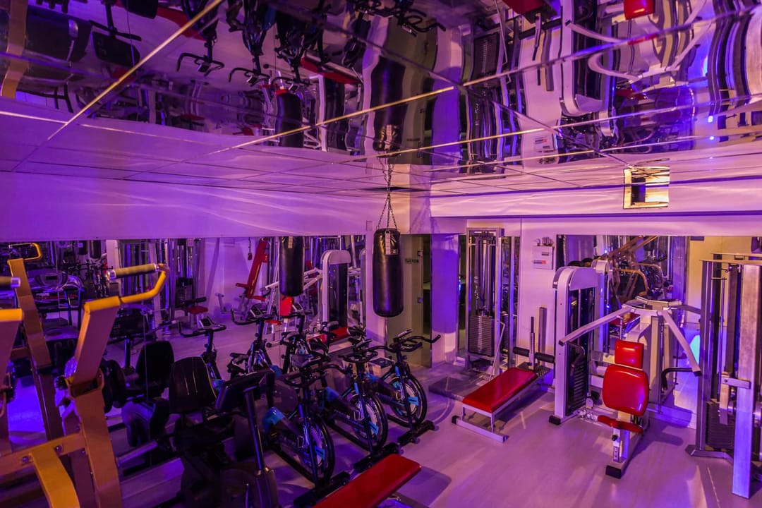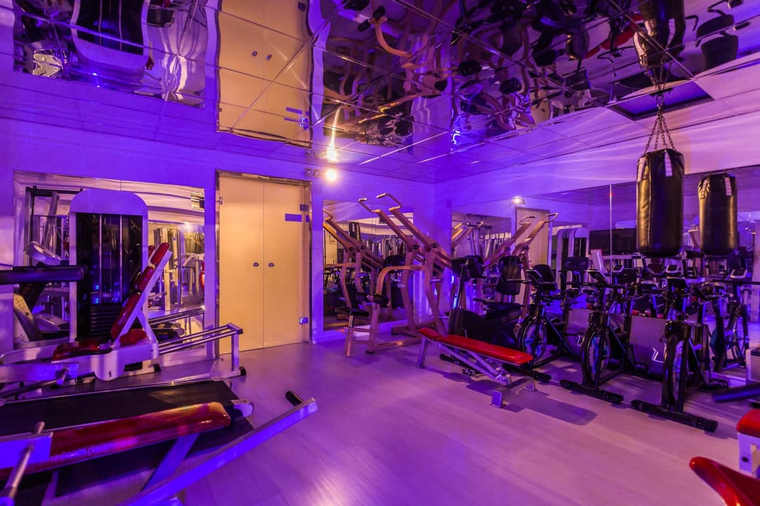 - Professional gym with elliptical, free weights, stationary bike, treadmill, yoga mat