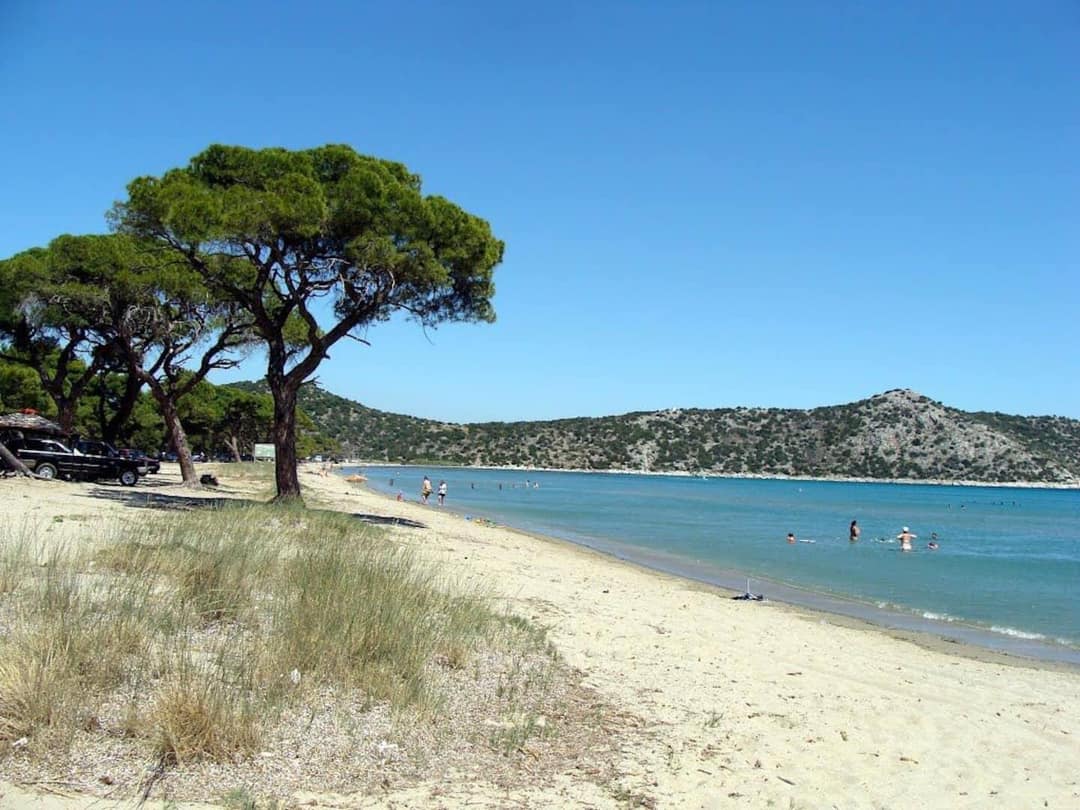 The sea has a shallow depth, gentle warmth, soft sand, and no waves, making it an ideal spot for families with children. Along the beach there are beach bars, restaurants and taverns.