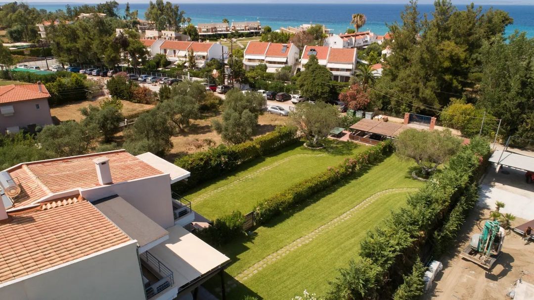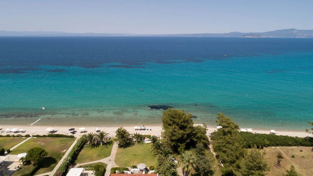The cleanest sea and wonderful beach, never crowded, are only 150 meters away. There are popular beach bars Glarokavos and Umbrellas, a water park with sea trampolines, as well as one of the most famous beaches of Halkidiki – Glarokavos.
