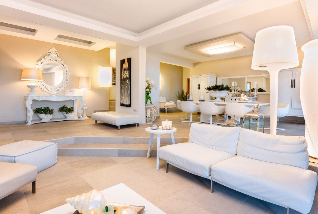 This summer residence extended in an area full of palm trees, has luminous and huge spaces, an exquisite garden, and a unique sandy beach, literally, just a few steps away.