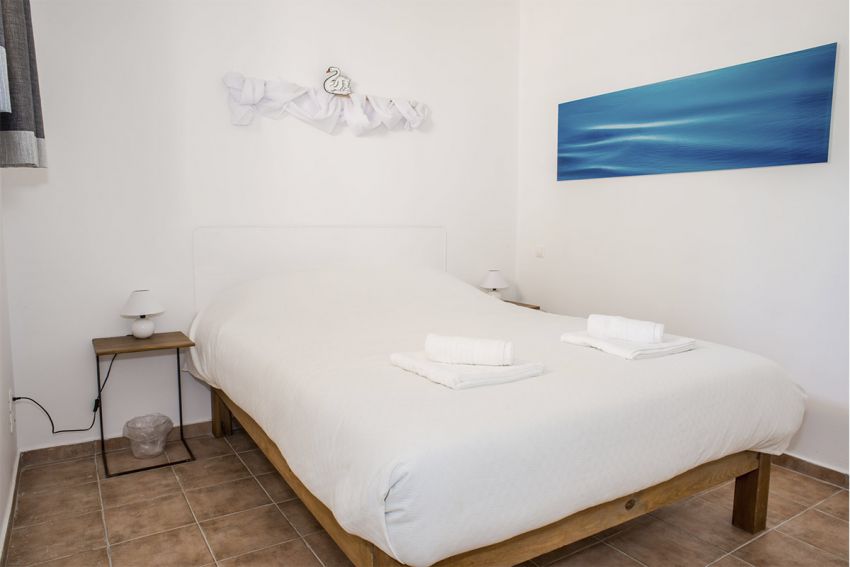 - 1st bedroom with double bed and ceiling fan