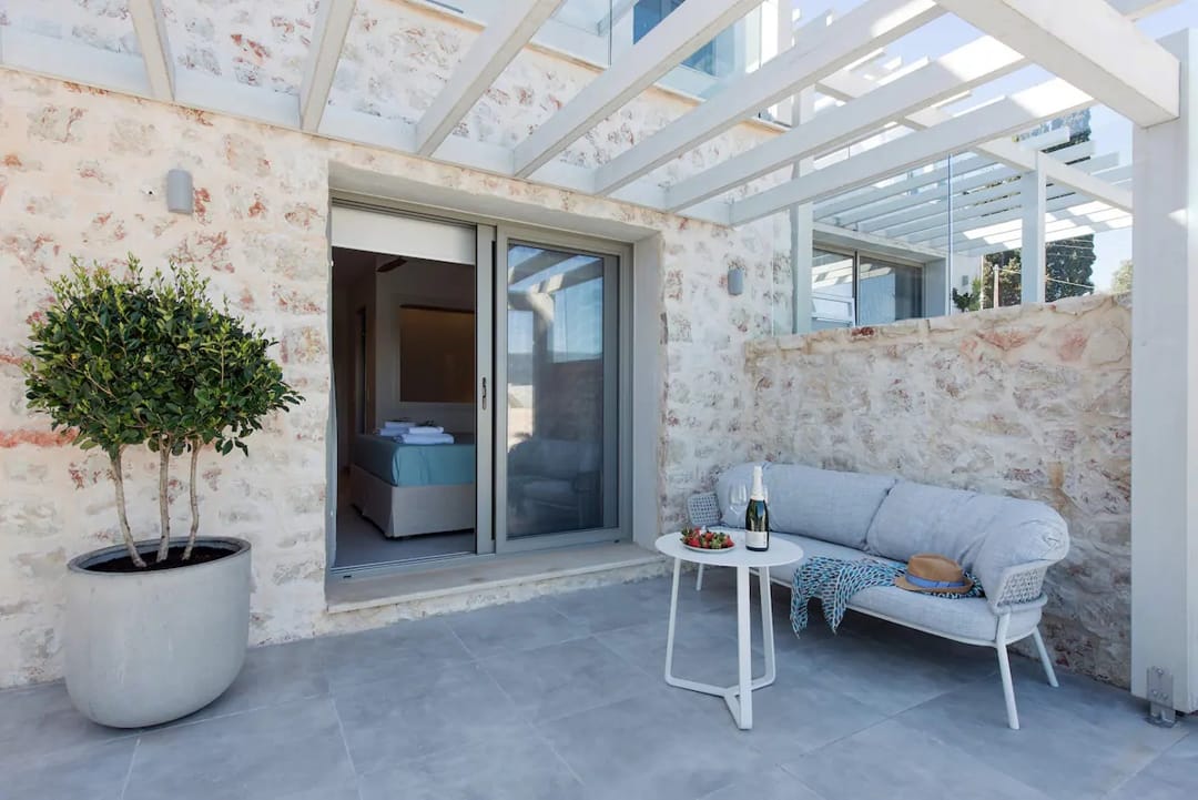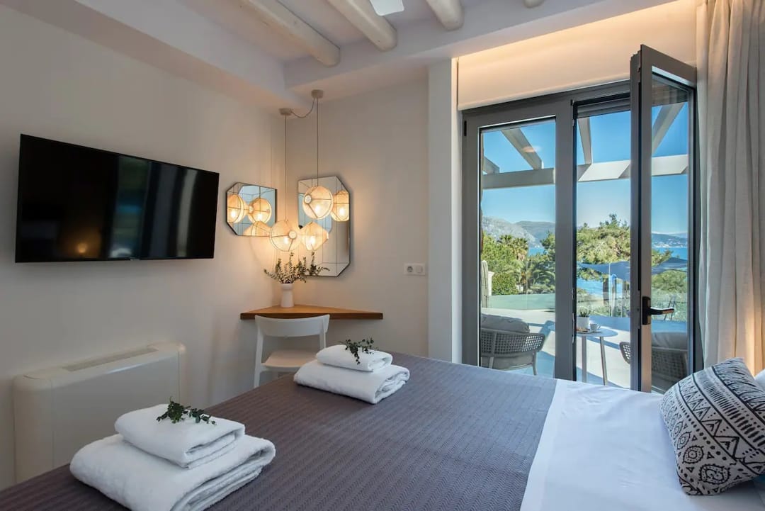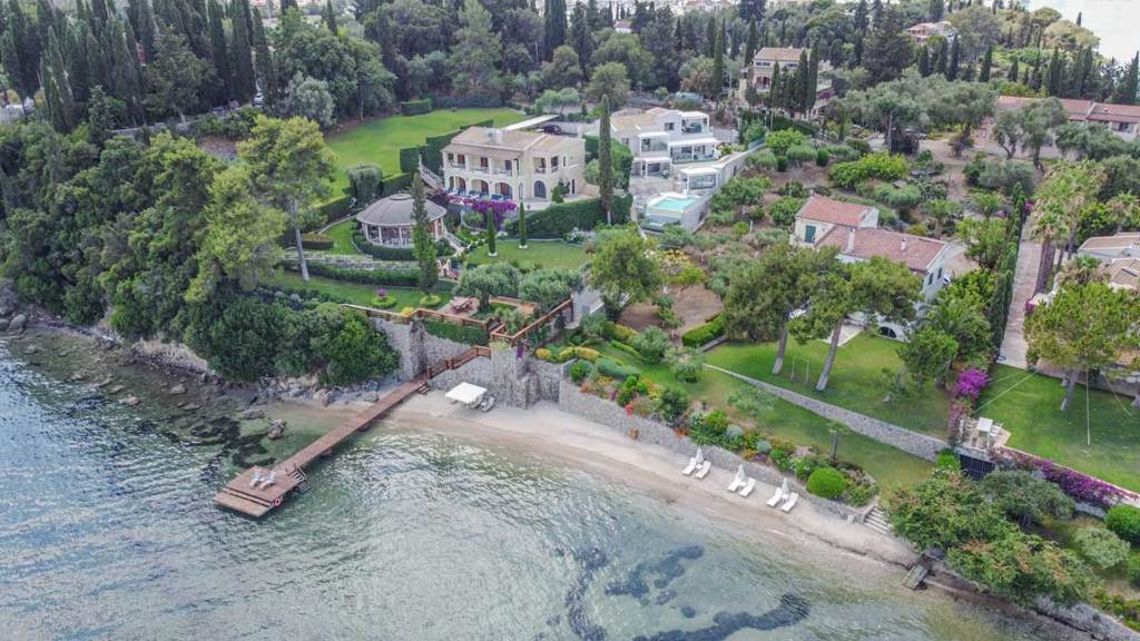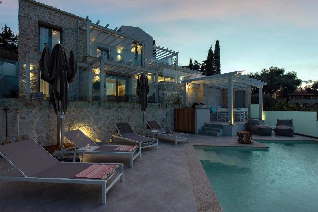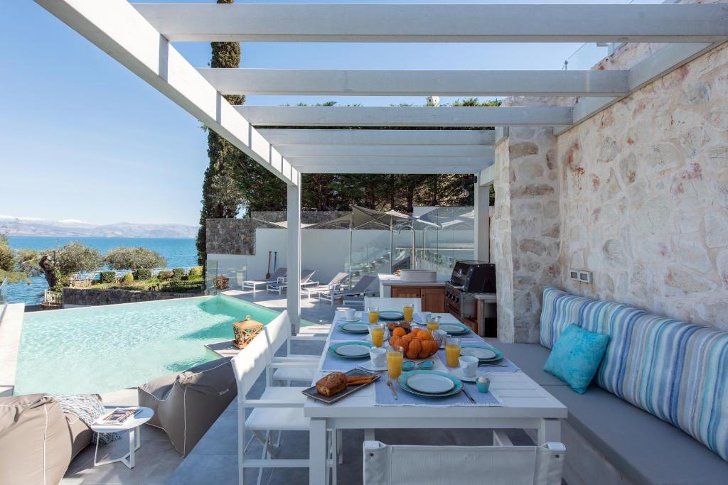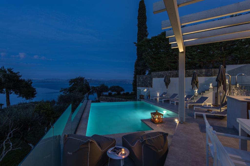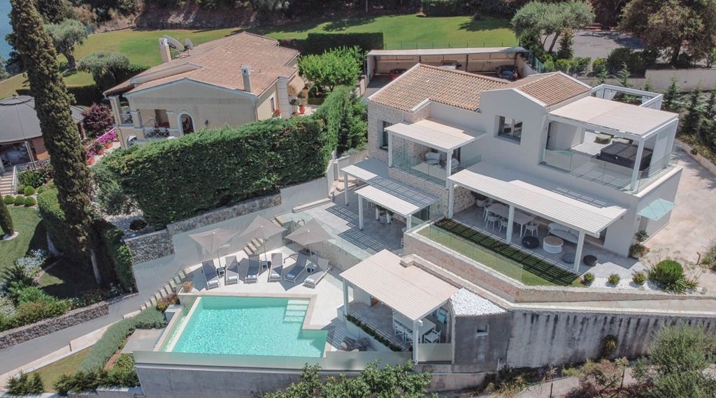 Luxury stylish villa Stella, with 3 bedrooms, private swimming pool, jacuzzi, and sandy and pebble beach, on Corfu Island for rent.