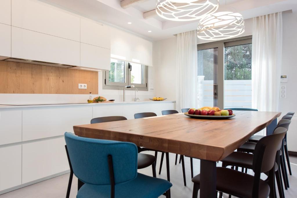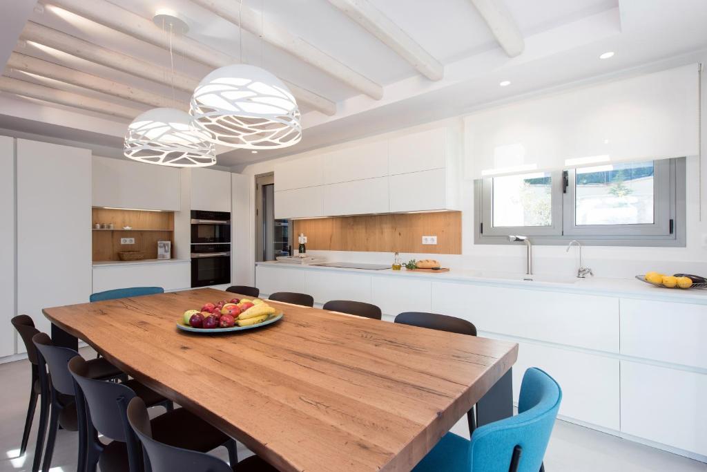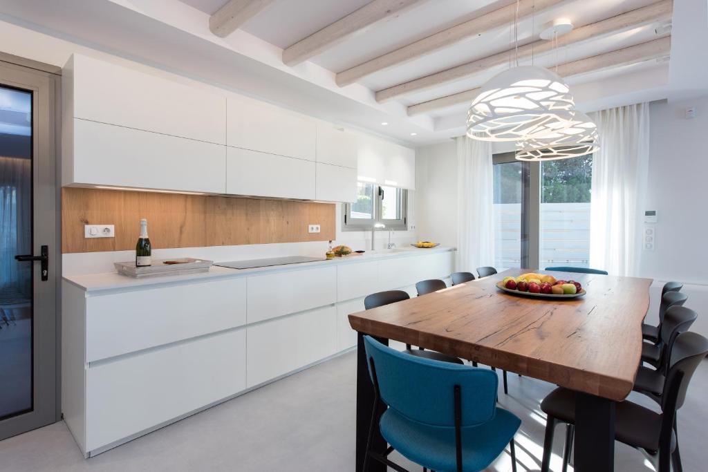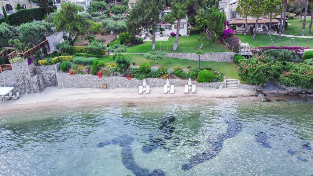 The villa is located in the picturesque resort of Kontokali, only 8 km from the capital Corfu. It offers a panoramic view of the sea, the famous area of Kommeno, the mainland coastline, and Corfu Town’s fortresses. The minimalist interior of the villa, with its grey and white colors, offers a sense of luxury and openness. At the same time, the outdoor areas feature a swimming pool, a stone patio, and a pergola. A private path leads to the sandy and pebble beach with umbrellas and sunbeds, as well as to a private jetty where yachts and boats can moor.