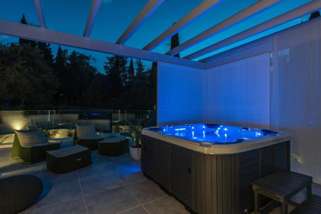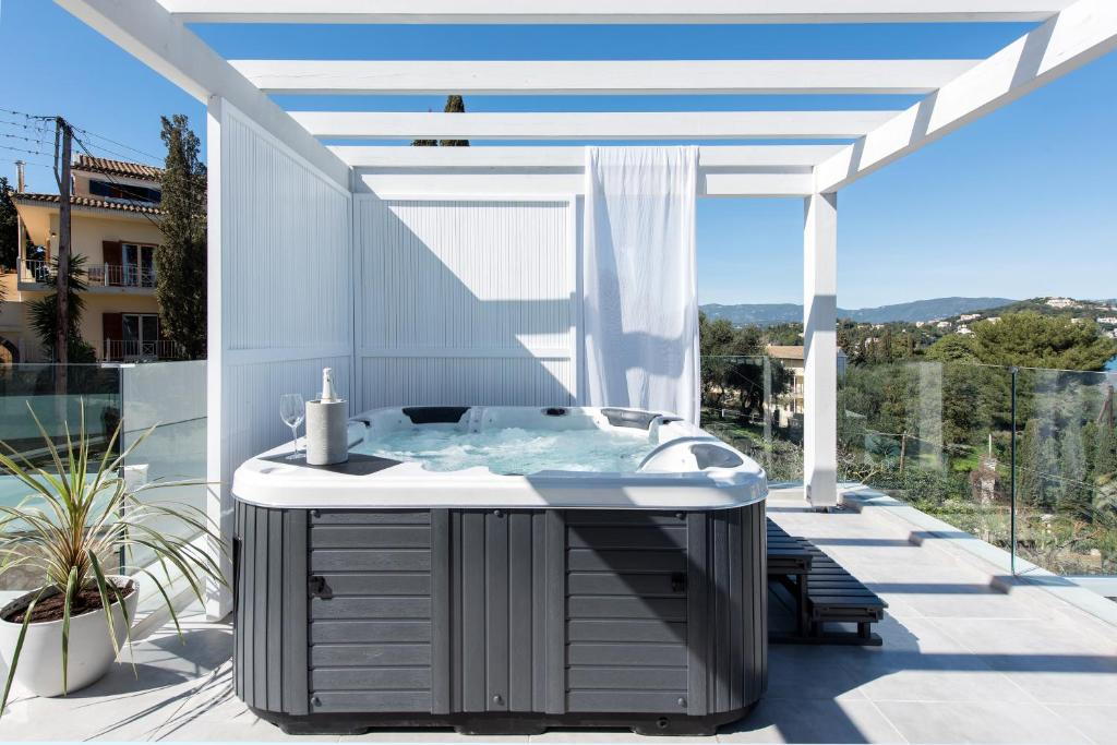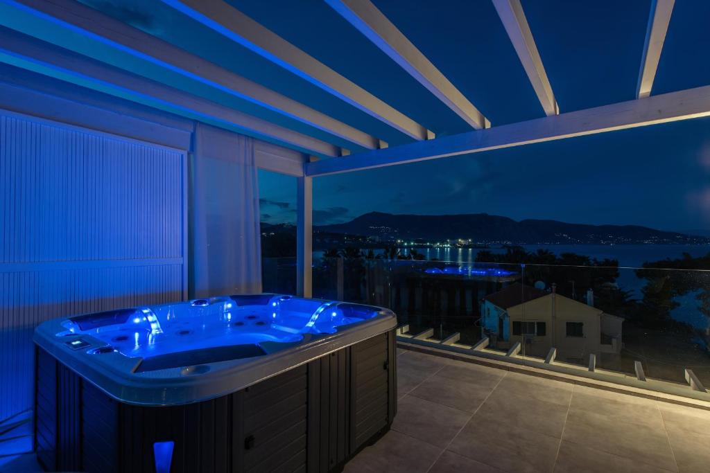 - Large veranda with a Jacuzzi bathtub, sunbeds, and breathtaking sea views
