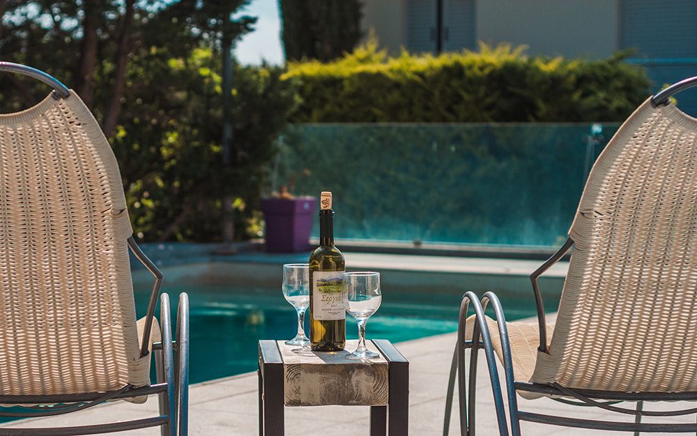 • Private swimming pool with hydromassage for a soothing dive while enjoying the peacefulness of the scenery
