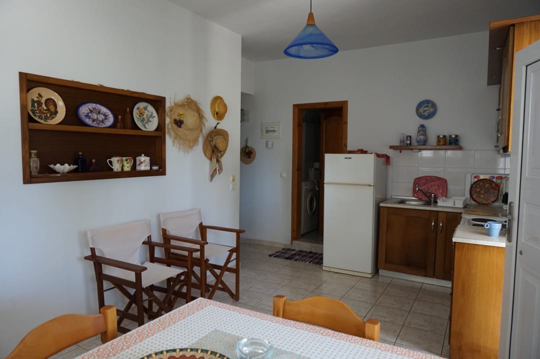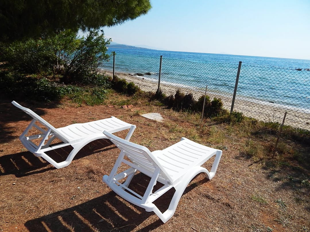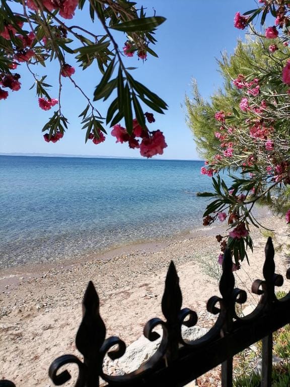 Family-friendly, comfortable apartment Vera with 2 bedrooms, a furnished terrace, and a private beach, located close to the village of Nikiti, on the Sithonia peninsula, Halkidiki, for rent.