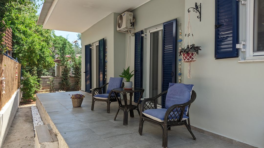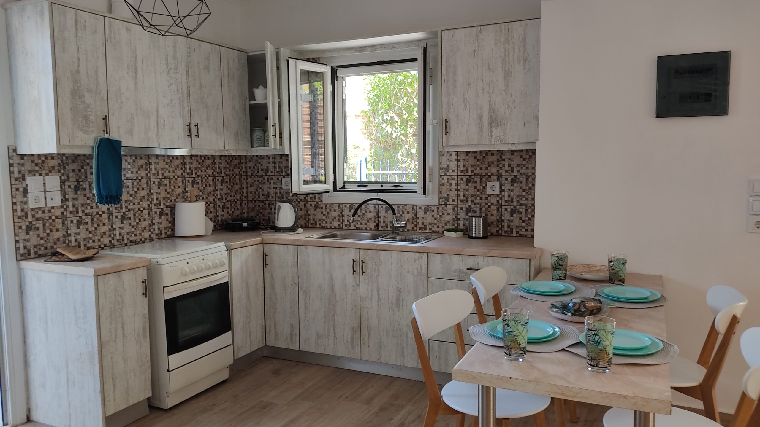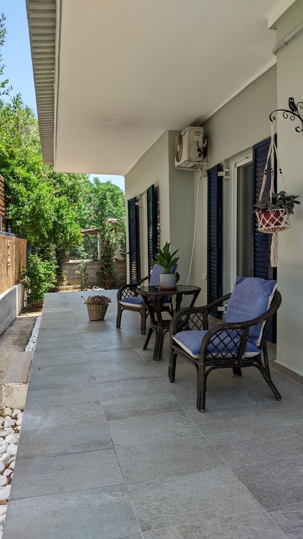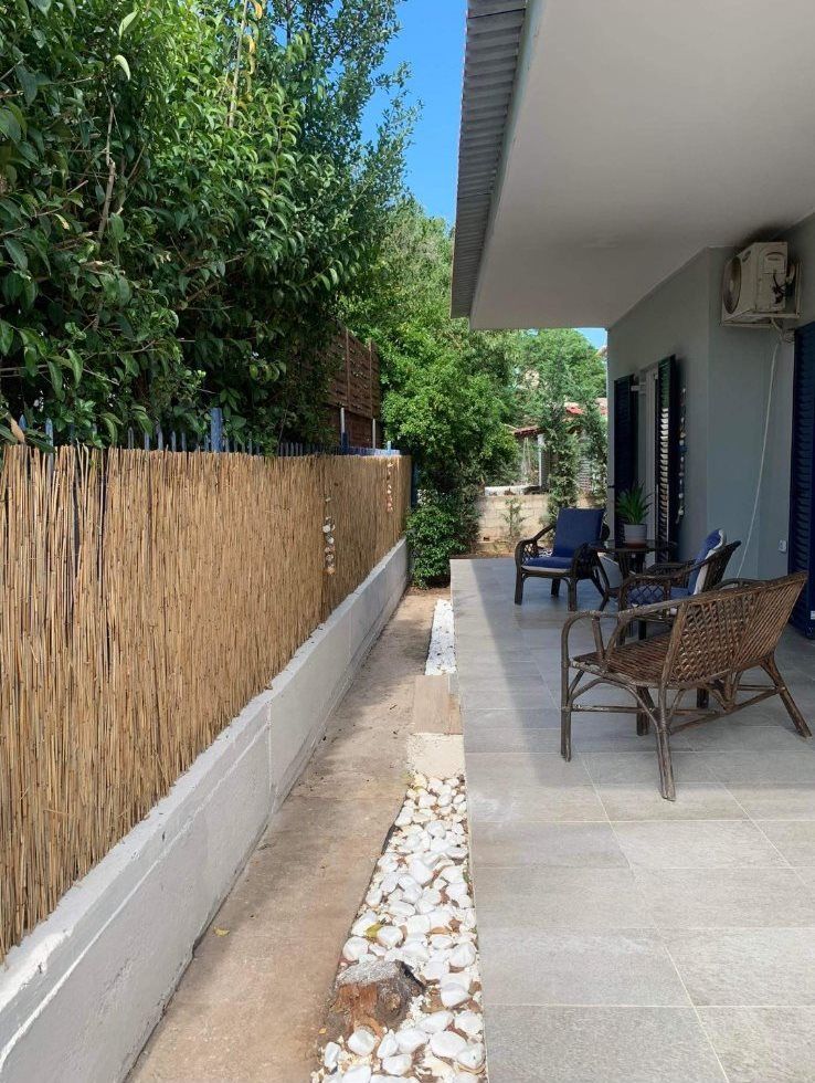 Brand new, family-friendly holiday house Vita, with 2 bedrooms and a cosy green garden, only 100 meters from the seaside promenade, in the town of Nea Makri, East Coast of Attica, for rent.