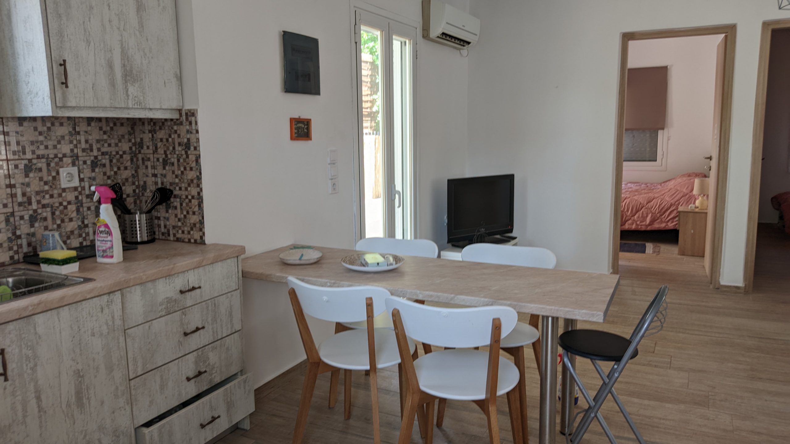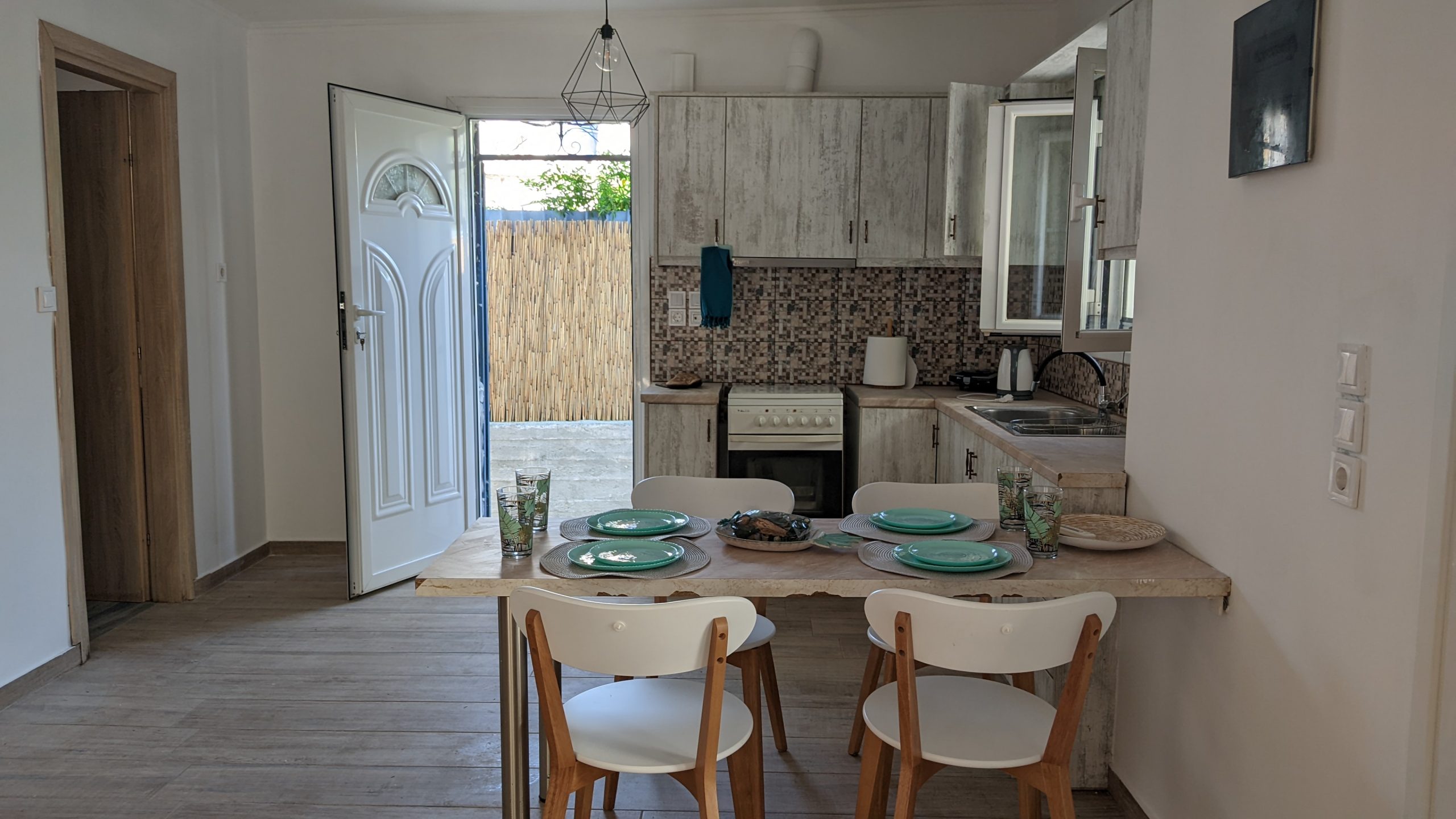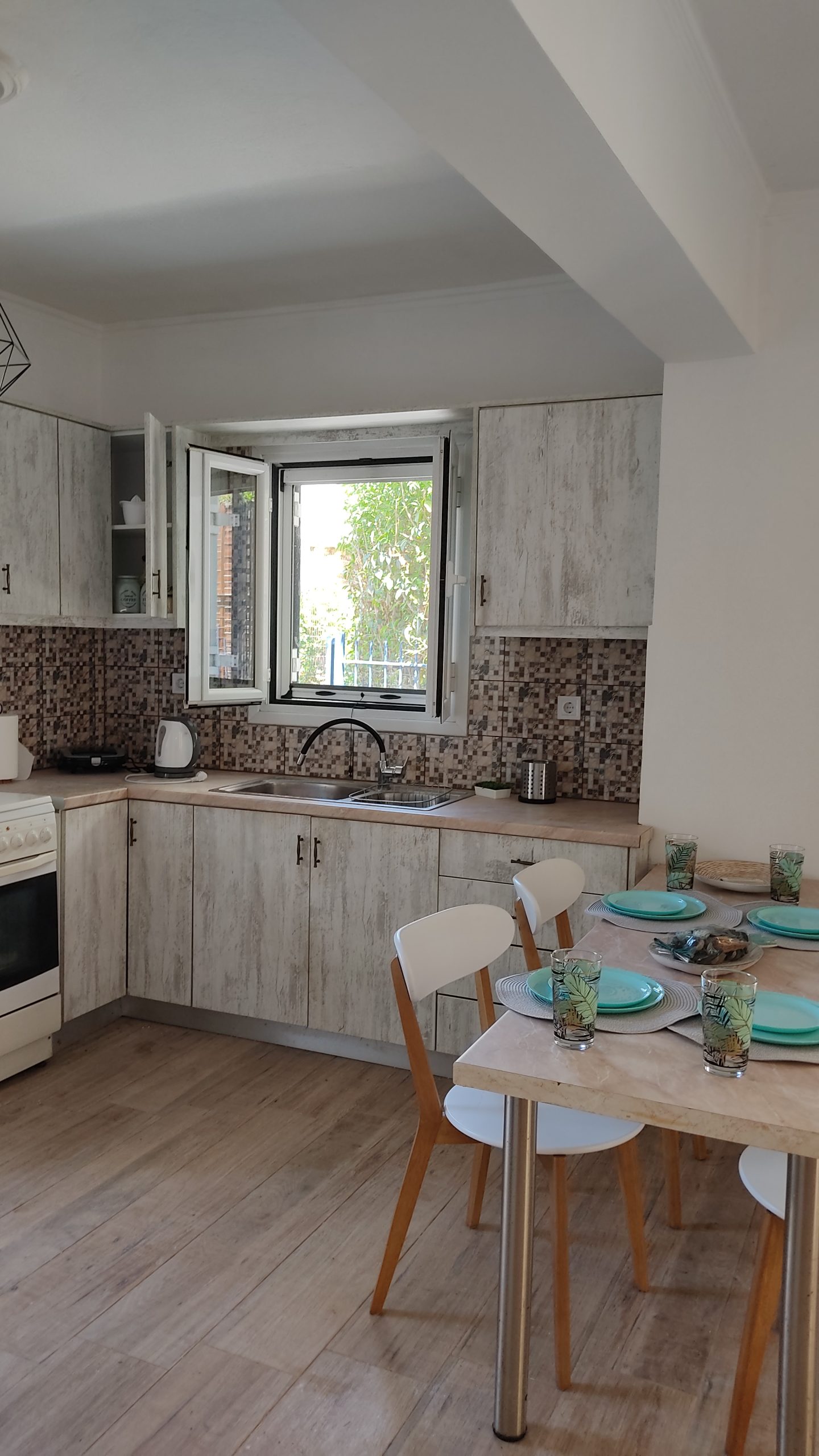 Brand new, family-friendly holiday house Vita, with 2 bedrooms and a cosy green garden, only 100 meters from the seaside promenade, in the town of Nea Makri, East Coast of Attica, for rent.